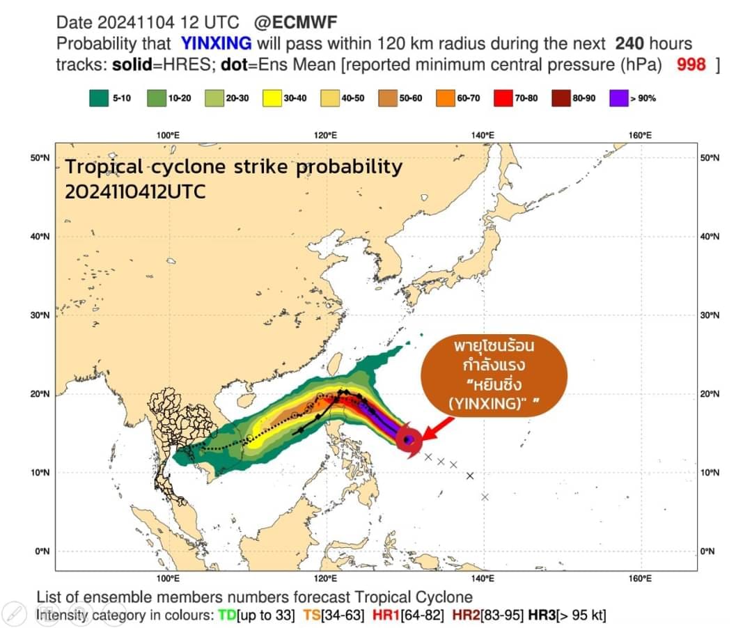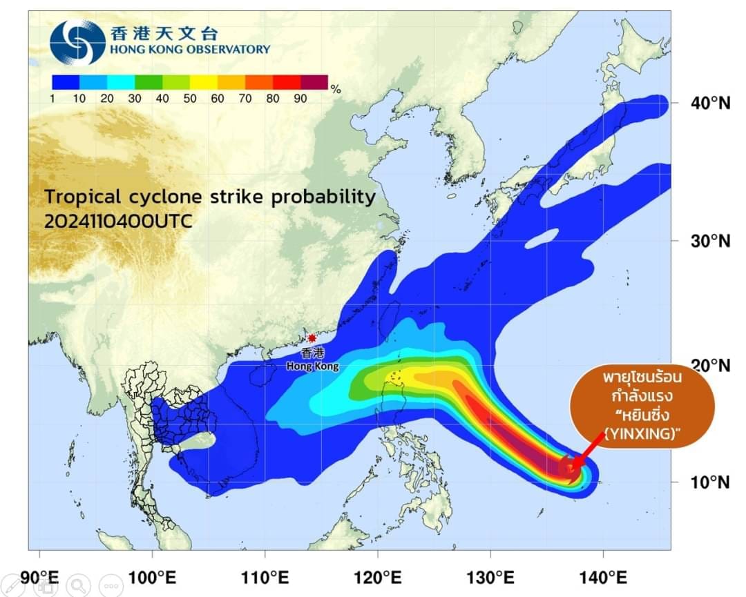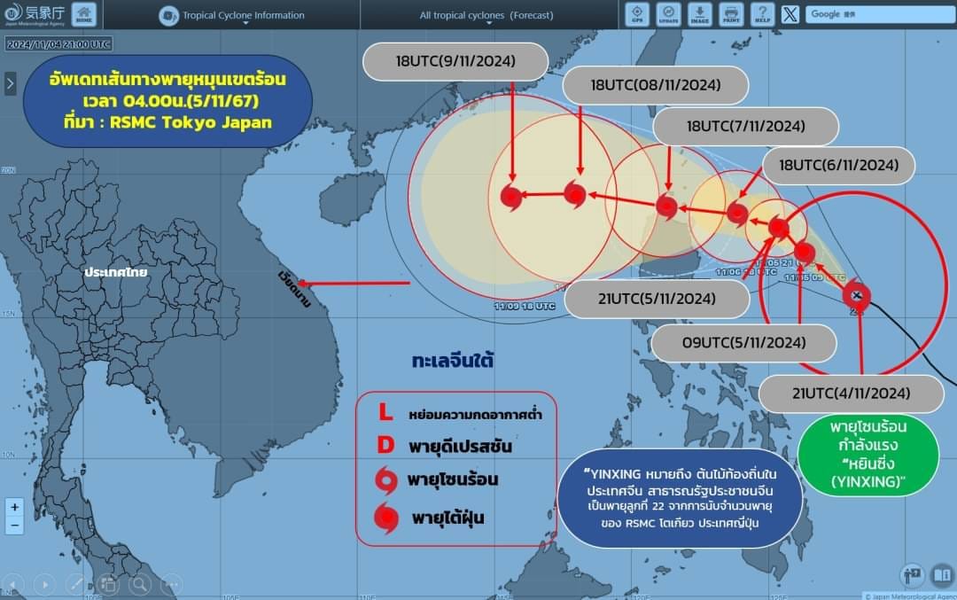อัปเดตสถาการณ์พายุหมุนเขตร้อนในมหาสมุทรแปซิฟิกและทะเลจีนใต้ล่าสุดเช้าวันนี้ (5/11/67) : พายุโซนร้อนกำลังแรง "หยินซิ่ง (YINXING)" มีศูนย์กลางบริเวณมหาสมุทรแปซิฟิกตะวันตก (YINXING หมายถึง ต้นไม้ท้องถิ่นในประเทศจีน สาธารณรัฐประชาชนจีน) ทางตะวันออกของประเทศฟิลิปปินส์ กำลังเคลื่อนตัวทางตะวันตกเฉียงเหนือ คาดว่าจะเคลื่อนผ่านตอนบนของเกาะลูซอล ประเทศฟิลิปปินส์