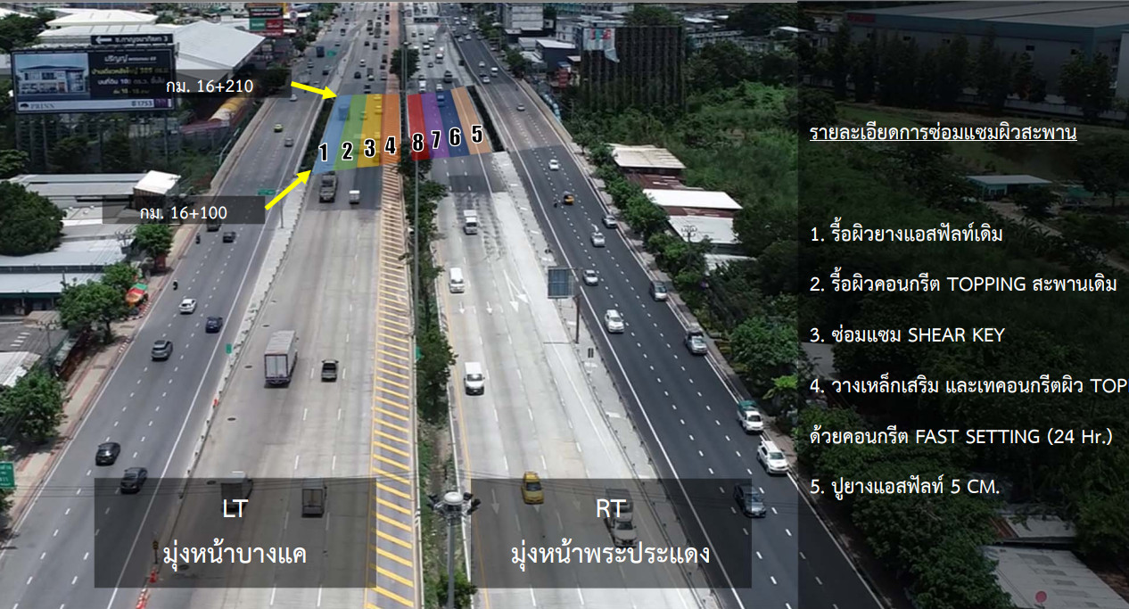 ระยะเวลา เริ่มตั้งแต่วันที่ 15 ตุลาคม 2567 กำหนดถึง 31 ธันวาคม 2567 ระหว่างดำเนินการ จะปิดเบี่ยงเพื่อซ่อมสะพาน ทีละ 1 ช่องการจราจรทั้งขาเข้าและขาออก ตลอด 24 ชั่วโมง