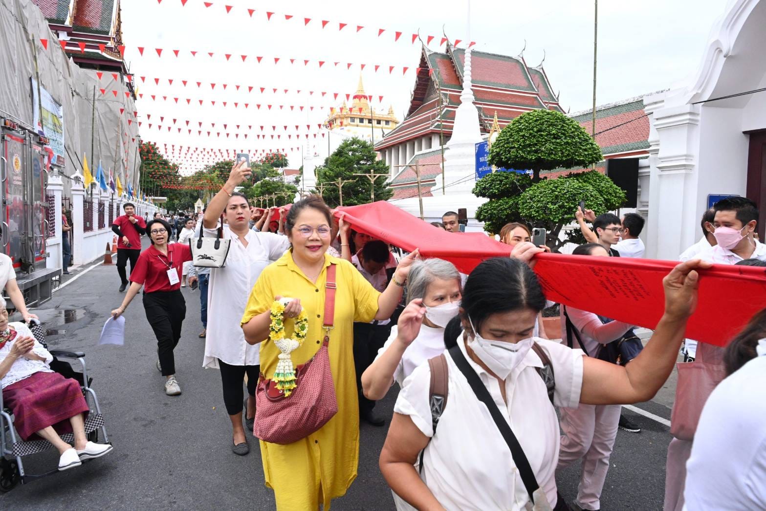 วันนี้ (8 พ.ย.67) เวลา 07.00 น. นายชัชชาติ สิทธิพันธุ์ ผู้ว่าราชการกรุงเทพมหานคร พร้อมด้วย นางวันทนีย์ วัฒนะ ปลัดกรุงเทพมหานคร ร่วมพิธีอัญเชิญผ้าแดงขึ้นห่มองค์พระเจดีย์พระบรมบรรพต เพื่อบูชาพระบรมสารีริกธาตุ เนื่องในงานนมัสการพระบรมสารีริกธาตุ ประจำปี 2567 ณ พระบรมบรรพต (ภูเขาทอง) วัดสระเกศราชวรมหาวิหาร เขตป้อมปราบศัตรูพ่าย
