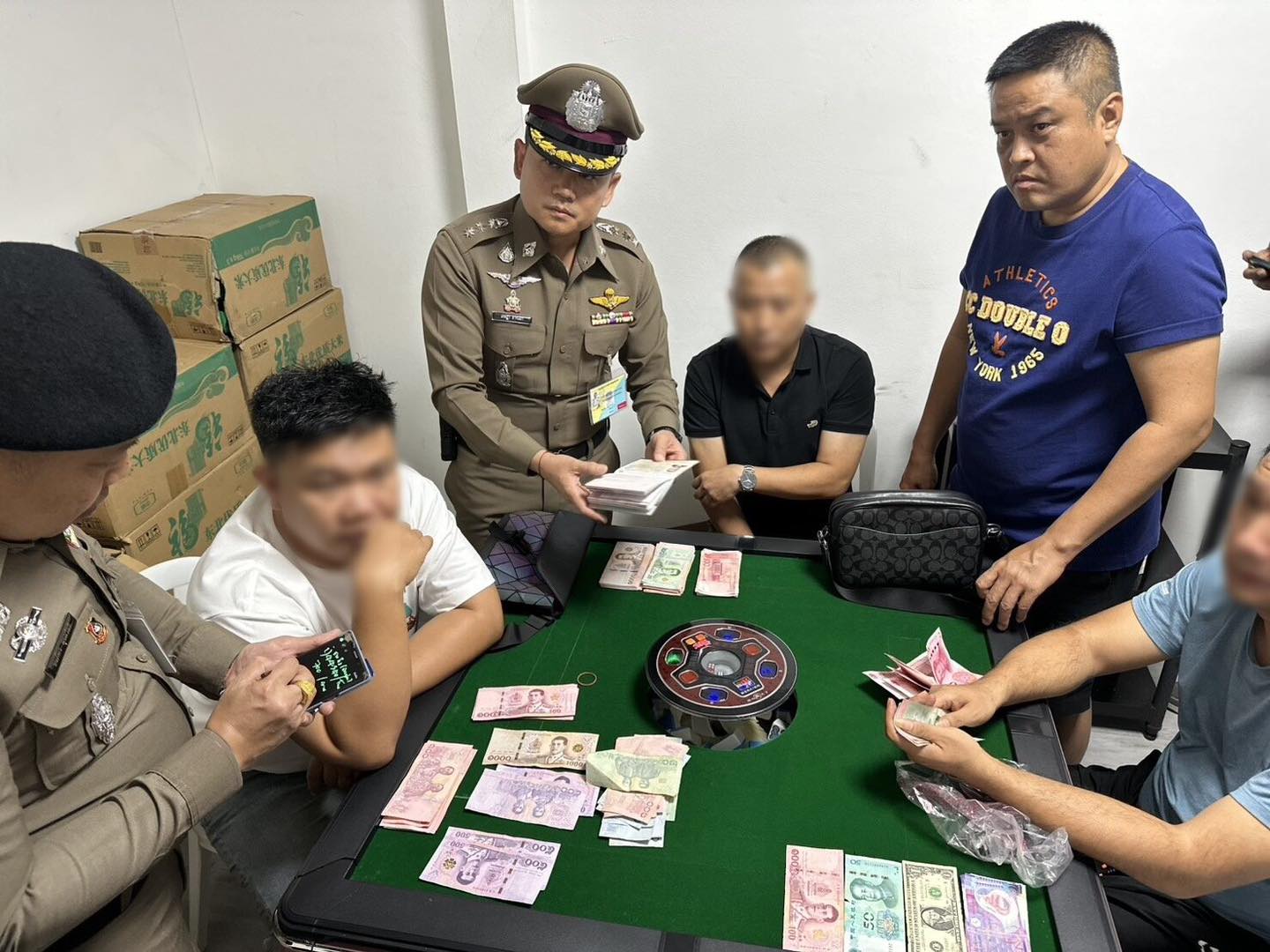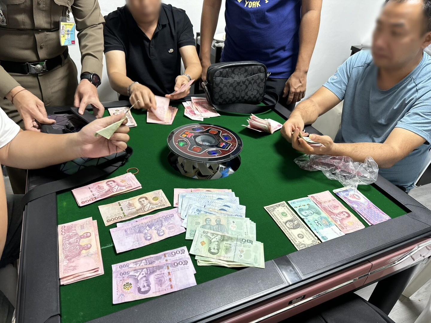 บ่อนดังกล่าวเปิดเป็นร้านอาหารจีนกลางแจ้ง จากการตรวจค้นภายในอาคารดังกล่าว พบห้องวีไอพีลักษณะปิดทึบ อยู่บริเวณด้านหลัง ภายในห้องพบชาย 4 คน กำลังนั่งล้อมโต๊ะเล่นไพ่ เมื่อตำรวจขอตรวจ เอกสารประจำตัว พบว่าชาย 4 คนเป็นคนจีนที่เข้ามาในประเทศไทยด้วยวีซ่านักท่องเที่ยว
