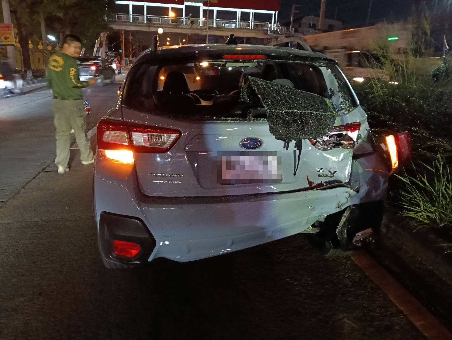 ที่เกิดเหตุ พบรถจักรยานยนต์ ฮอนด้า เวฟ สีดำ - แดง รถใหม่ยังไม่ติดป้ายทะเบียน ล้มคว่ำอยู่ริมถนน และใกล้กันพบร่างของผู้เสียชีวิต 1 ราย เป็นหญิงไทย อายุ 39 ปี ภูมิลำเนาชาว จ.ร้อยเอ็ด และมีผู้บาดเจ็บอีก 1 รายเป็นผู้หญิง มีอาการสาหัส ทาง หน่วยกู้ภัยร่มไทรนำส่งรพ.ปทุมเวช ห่างออกไปพบรถอเนกประสงค์ ซูบารุ สีเทา ป้ายทะเบียน กทม. สภาพท้ายรถและกระจกหลังพังเสียหาย