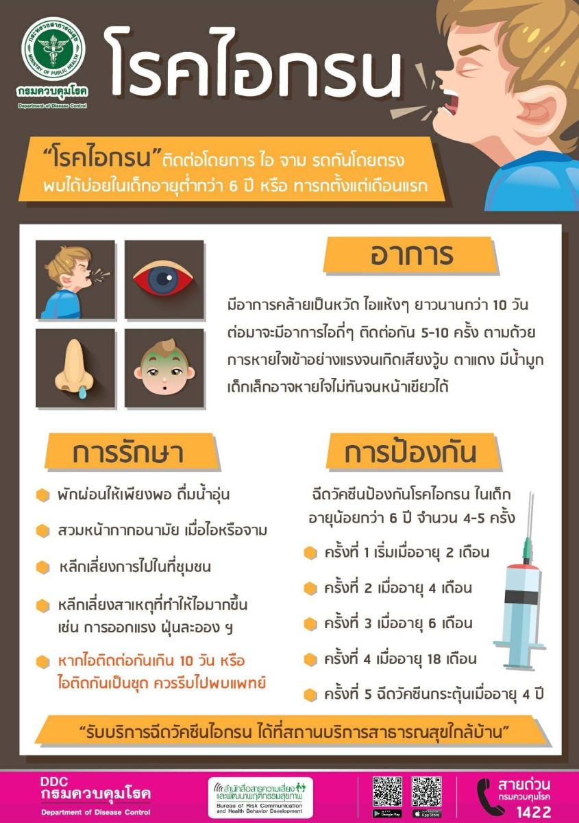 ย้ำว่า กรณีที่พบผู้ป่วยไอกรนในเขตกรุงเทพมหานคร ยังไม่ถือว่าเป็นสถานการณ์การแพร่ระบาดเพราะยังเจอเฉพาะกลุ่ม แต่ขอให้ทุกคนคง ปฏิบัติตนตามมาตรการด้านสุขอนามัย เช่นการสวมหน้ากากอนามัย / มั่นล้างมือ เพื่อลดการรับเชื้อเข้าสู่ร่างกาย
