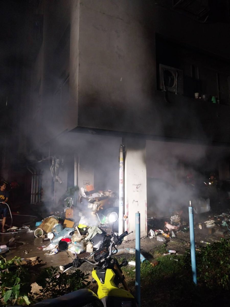 ลักษณะที่เกิดเหตุเป็น เพลิงไหม้กองขยะลุกลาม รถยนต์นั่งส่วนบุคคล 1. โตโยต้า ไทเกอร์ ทะเบียน กรุงเทพมหานคร เพลิงลุกไหม้เสียหายหมดทั้งคัน 2. รถนั่งส่วนบุคคล โตโยต้า อัลติส ทะเบียน กรุงเทพมหานคร เพลิงลุกไหม้ด้านท้ายเสียหายประมาณครึ่งคัน และ 3. รถนั่งส่วนบุคคล ฮอนด้า โมบิลิโอ ทะเบียน กรุงเทพมหานคร เพลิงลุกไหม้ด้านหน้าเสียหายประมาณครึ่งคัน และลุกลามเครื่องปรับอากาศ ( ด้านนอกอาคาร ) 1 เครื่อง รถดับเพลิงใช้น้ำทำการดับเพลิงสงบ