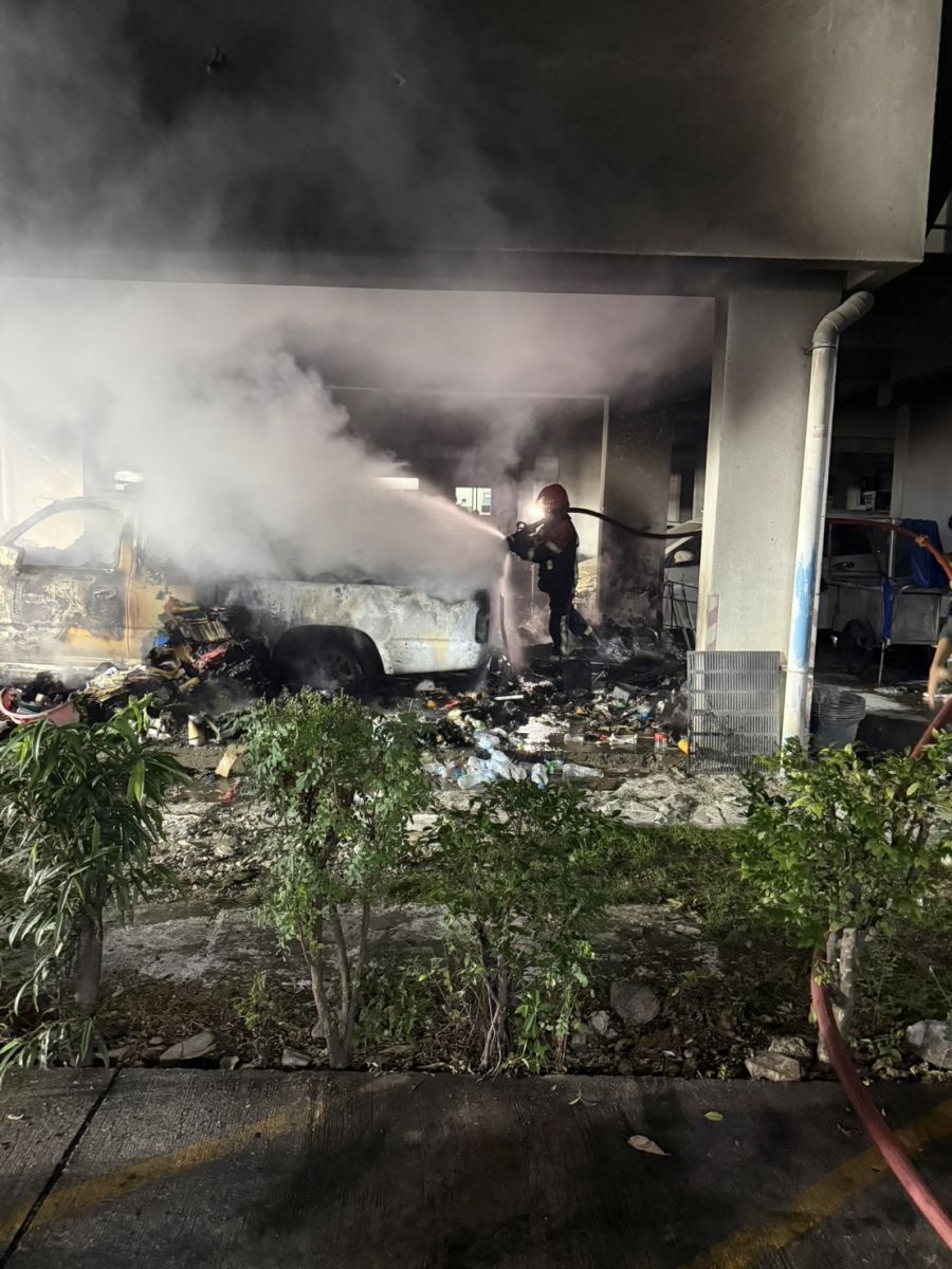 ไฟไหม้กองขยะ ย่านซอยโชคชัย 4 แล้วลุกลามรถยนต์ที่จอดใต้อาคารเสียหาย 3 คัน