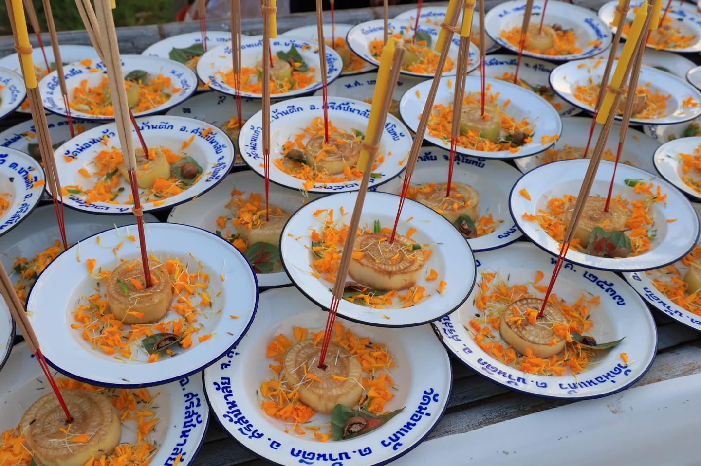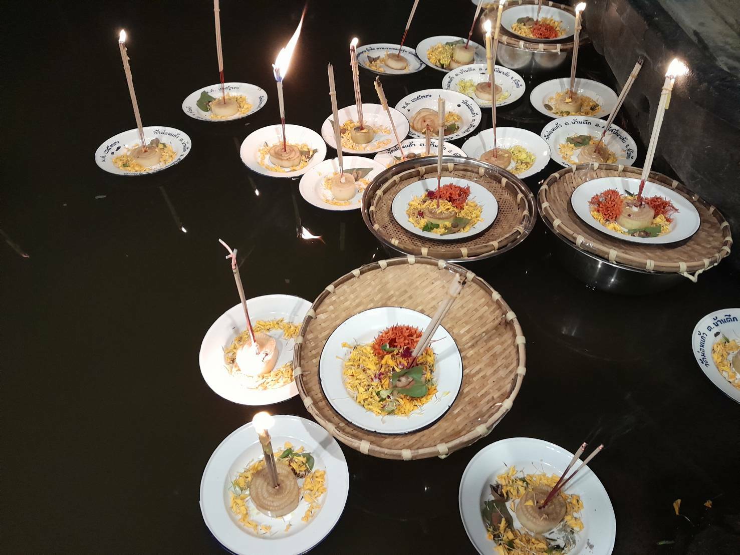 โดยชาวบ้านจะใช้จานสังกะสี สีขาว หม้อ กะละมัง ใส่ดอกไม้ ธูปเทียน หมากพลู เครื่องสักการะบูชา นำมาใช้ร่วมลอยกระทง ซึ่งนอกจากจะได้ขอขมาแม่คงคาโดยไม่ทำให้น้ำเน่าเสียแล้ว ยังได้ร่วมทำบุญกับทางวัดด้วย เนื่องจากจะมีเจ้าหน้าที่คอยเก็บกระทงจาน กะละมัง หม้อ เหล่านี้ไว้ เมื่อเสร็จงานแล้วจะถวายให้วัดไว้ใช้ประโยชน์ต่อไป