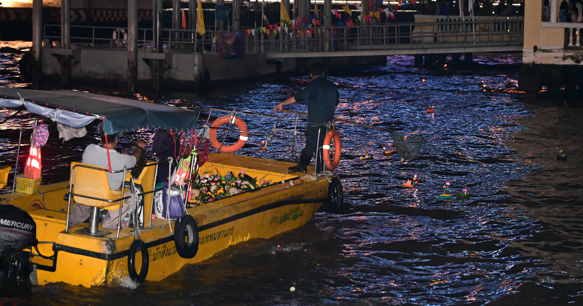 (15 พ.ย. 67) เวลา 21.00 น. นายชาตรี วัฒนเขจร รองปลัดกรุงเทพมหานคร พร้อมด้วย นายพรพรหม วิกิตเศรษฐ์ ที่ปรึกษาของผู้ว่าราชการกรุงเทพมหานคร และผู้บริหารด้านความยั่งยืนของกรุงเทพมหานคร (Chief Sustainability Officer: CSO) นายเอกวรัญญู อัมระปาล โฆษกของกรุงเทพมหานคร และผู้บริหารสำนักสิ่งแวดล้อม ตรวจเยี่ยมการปฏิบัติงานและให้กำลังใจเจ้าหน้าที่ผู้ปฏิบัติงานจัดเก็บกระทงในแม่น้ำเจ้าพระยา ในเทศกาลลอยกระทงประจำปี 2567 ณ บริเวณปากคลองโอ่งอ่าง ฝั่งพระนคร (ใต้สะพานพระปกเกล้า) ก่อนสำนักสิ่งแวดล้อมจะนำไปกำจัดอย่างถูกวิธี