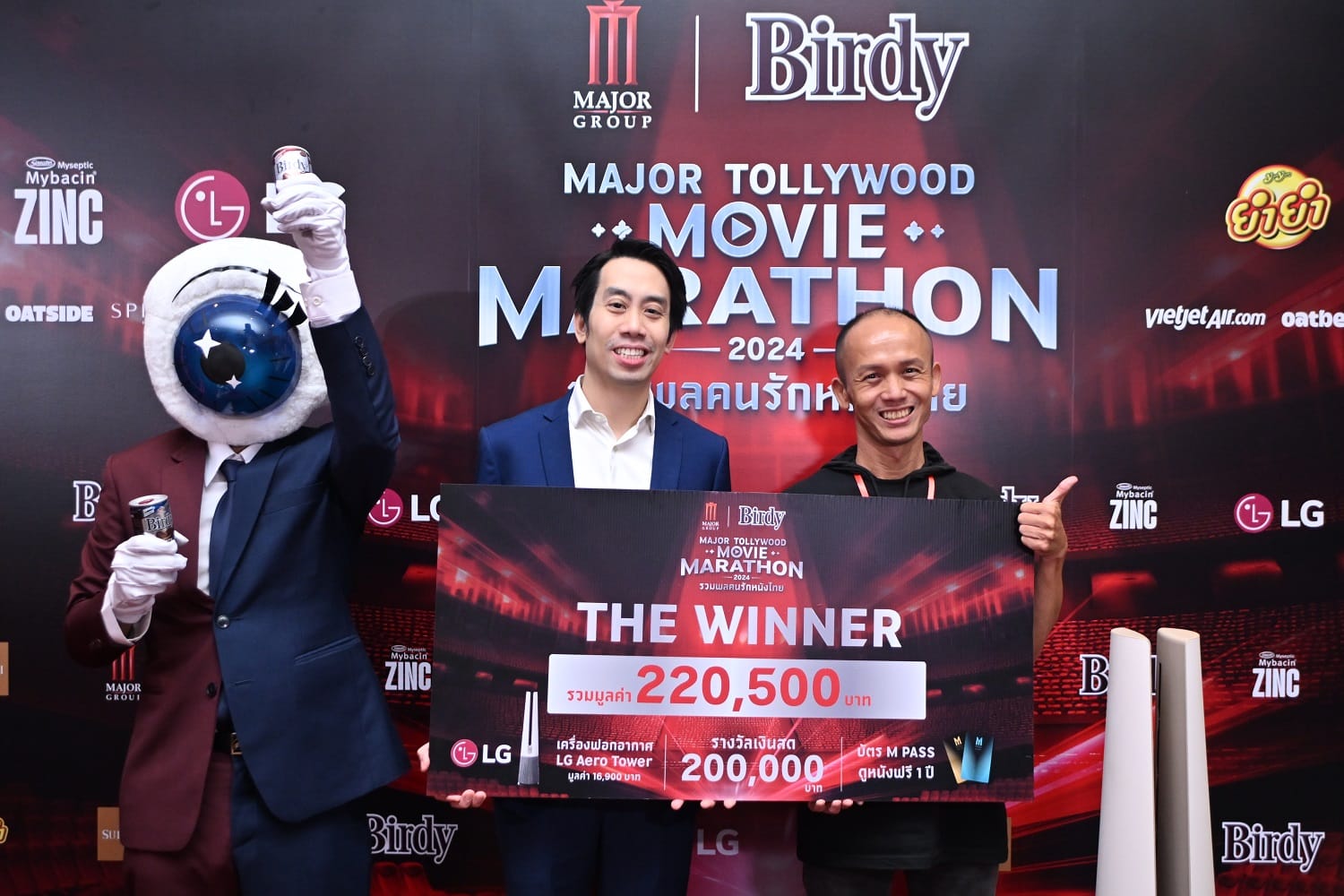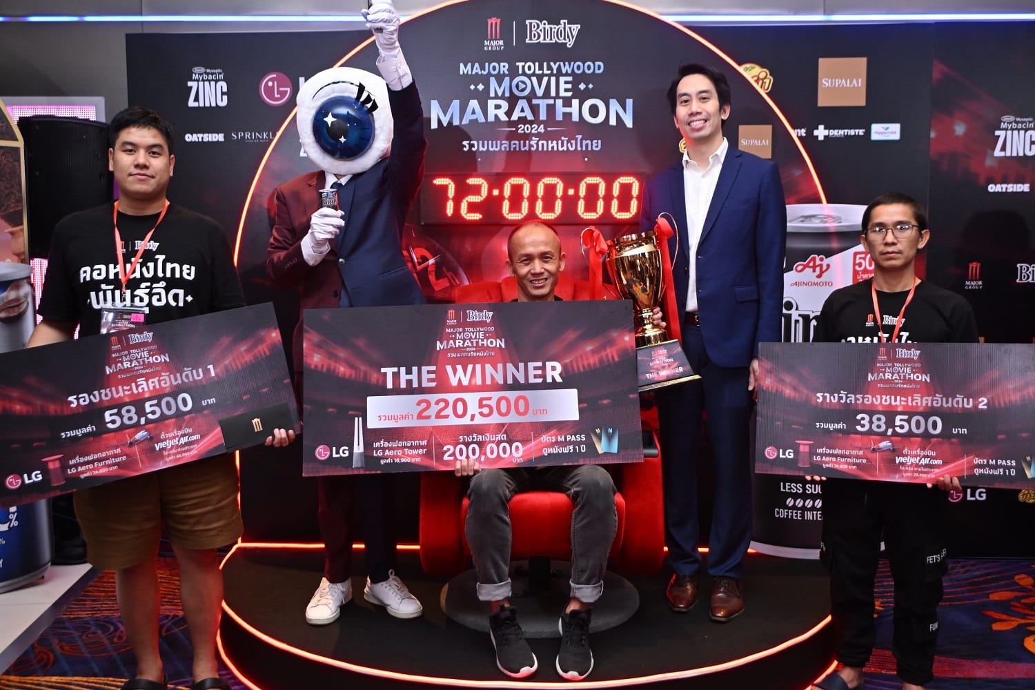 ปัญญา ชำนาญ คว้าแชมป์คอหนังพันธุ์อึด...ดูหนังไทยมาราธอน 72 ชม. จากกิจกรรม “MAJOR TOLLYWOOD MOVIE MARATHON 2024” รับรางวัลเงินสด 2 แสนบาท พร้อมถ้วยรางวัลและของรางวัลไปครอง
