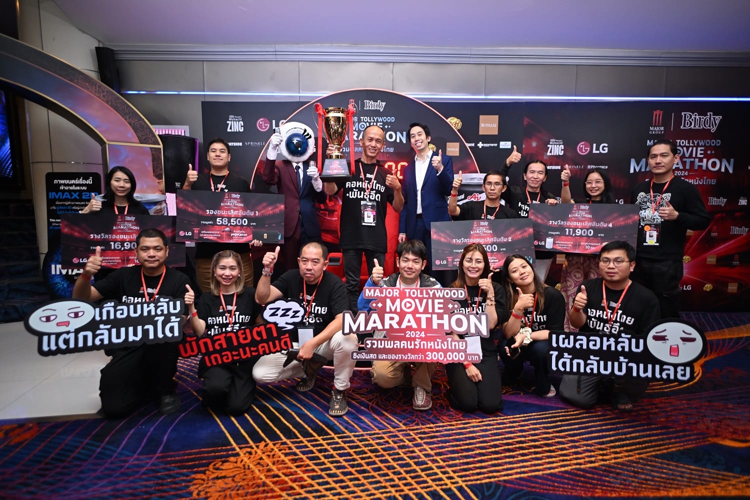 รู้ผลเป็นที่เรียบร้อยแล้วสำหรับแชมป์ดูหนังมาราธอน “MAJOR TOLLYWOOD MOVIE MARATHON 2024” เรียกได้ว่าลุ้นนาทีต่อนาทีสำหรับการแข่งขันที่ค้นหาคนแฟนพันธุ์แท้หนังไทยที่มีทั้งความอึด ความอดทน มาประลองความแกร่งดูหนังมาราธอนที่ยาวนานถึง 72 ชั่วโมง ตั้งแต่วันที่ 15 พฤศจิกายน - 18 พฤศจิกายน เวลา 12.00 น. ณ โรงภาพยนตร์เมเจอร์ ซีนีเพล็กซ์ รัชโยธิน โรงที่ 13 โดยแชมป์ ดูหนังพันธุ์อึดตกเป็นของ "ปัญญา ชำนาญ" อดีตแชมป์ดูหนังมาราธอน จากปี 2012 คว้ารางวัลกว่า 200,000 บาท พร้อมถ้วยรางวัล เครื่องฟอกอากาศ LG Aero Tower และบัตรสมาชิก M PASS ฟรี 1 ปี ไปครองได้สำเร็จ