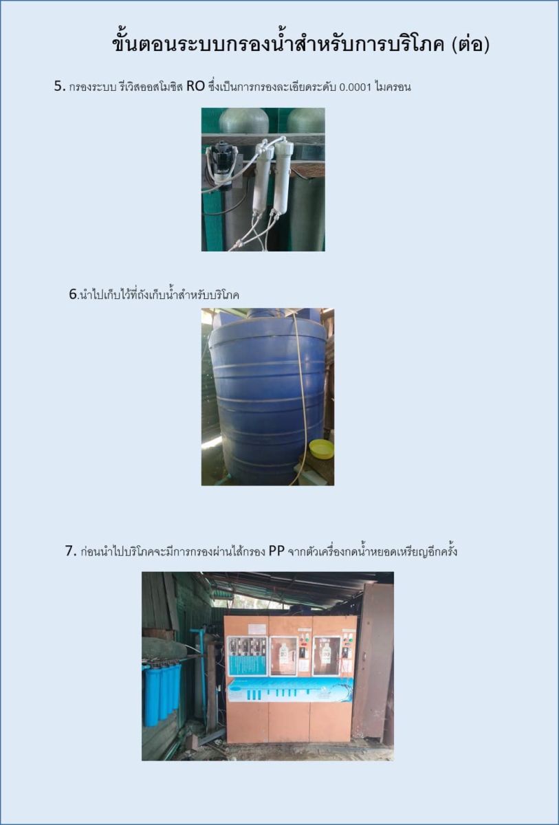 7. ก่อนนำไปบริโภคจะมีการกรองผ่านไส้กรอง pp จากตัวเครื่องกดน้ำหยอดเหรียญอีกครั้ง