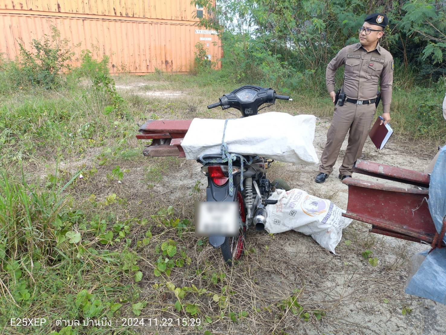 เมื่อเวลา 15.00 น. วันที่ 22 พฤศจิกายน2567 เจ้าหน้าที่ตำรวจ สภ.บ้านบึง รับแจ้งจากประชาชนว่า มีคนร้ายเข้ามาขโมยตัดโครงหลังคาบ้าน และเดินหนีเข้าไปในป่าใกล้เคียง บริเวณลานที่ดินเปล่าของบริษัทแห่งหนึ่ง ในพื้นที่ ตำบลหนองบอนแดง อำเภอบ้านบึง จังหวัดชลบุรี