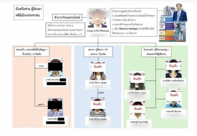 2. น.ส.จิดาภา อายุ 53 ปี เลขาส่วนตัว นายแพทย์บุญ ผู้จัดการเรื่องการเงิน และการบัญชีสัญญากู้เงินทั้งหมด ผู้ต้องหาตามหมายจับศาลอาญา ที่ 5646/2567 ลงวันที่ 22 พ.ย. 67 ข้อหา ร่วมกันฉ้อโกงประชาชน และ ร่วมกันให้กู้ยืมเงินที่เป็นการฉ้อโกงประชาชน