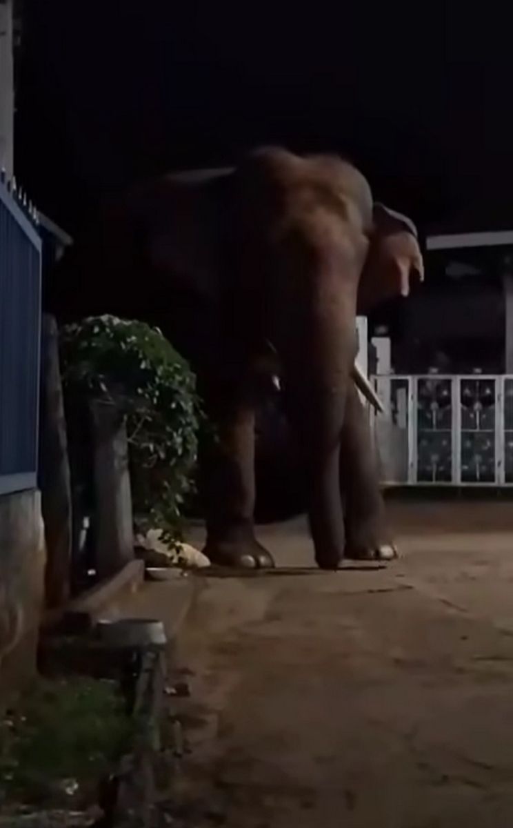 ถ้าเจอช้างเดินในหมู่บ้านกลางคืนแบบนี้ วิธีเดียวคืออยู่ห่างๆครับ หาที่หลบ และแจ้งเจ้าหน้าที่ หรืออาสาทันทีครับ ไม่ใช่เดินไปไล่เองแบบนี้นะครับ ด้วยความห่วงใยครับ"