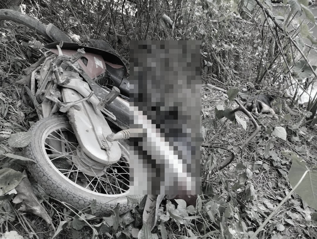 จักรยานยนต์พลิกคว่ำลงข้างตลิ่งริมลำห้วย รถทับร่างคุณตาวัย 71 ปีเสียชีวิต จ.พะเยา