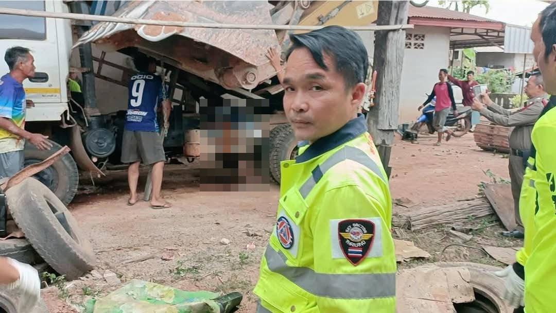 ชายวัย 57 ปี มุดซ่อมรถ ก่อนถูกกระบะท้ายรถบรรทุกหล่นลงมาทับร่าง, ศีรษะเข้ากับคานรถเสียชีวิต จ.บึงกาฬ
