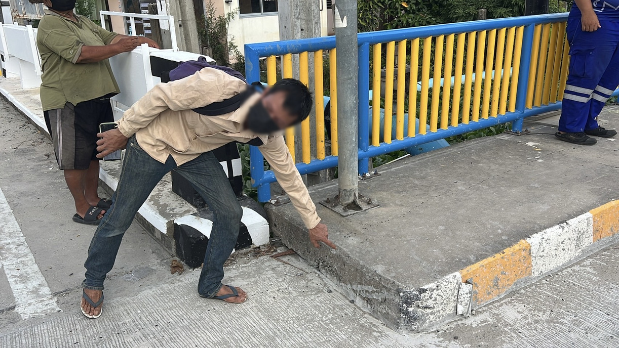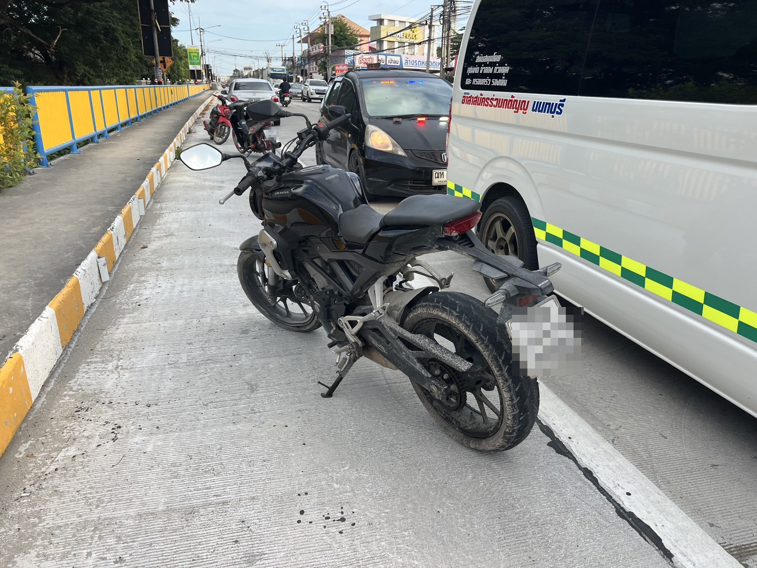 เมื่อมาถึงที่เกิดเหตุในขณะที่ตนเองขับขี่อยู่ในช่องทางซ้าย และมีรถกระบะที่อยู่ด้านหน้าเกิดเลี้ยวตัดหน้าเพื่อเข้าซอยอย่างกระชั้นชิด ทำให้ตนเองต้องหักหลบเป็นเหตุให้รถจักรยานยนต์ของตนนั้นพุ่งชนขอบฟุตบาทก่อนจะพลิกคว่ำ ภรรยาที่นั่งซ้อนท้ายมาก็พลัดตกจากรถศีรษะกระแทกพื้นอย่างแรงและหมดสติไป ส่วนคนขับรถกระบะคันดังกล่าวหลังจากเกิดเหตุได้เดินออกมาดู โดยตนยังต่อว่าเรื่องไม่เปิดไฟเลี้ยว แต่เจ้าตัวคนขับอ้างว่าได้ทำการเปิดไฟเลี้ยวมาระยะหนึ่งแล้ว หลังพูดจบคนขับรถกระบะได้เดินออกจากที่เกิดเหตุและหายไป
