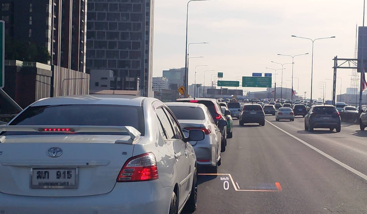 08.15 น. ทางพิเศษศรีรัช ขาออก ทางลงพระราม 9 ติดขัด ปริมาณรถมาก ลงจากด่วนแล้ว ใช้ถนนพระราม 9 ขาออก การจราจรยังเคลื่อนตัวได้เรื่อยๆ