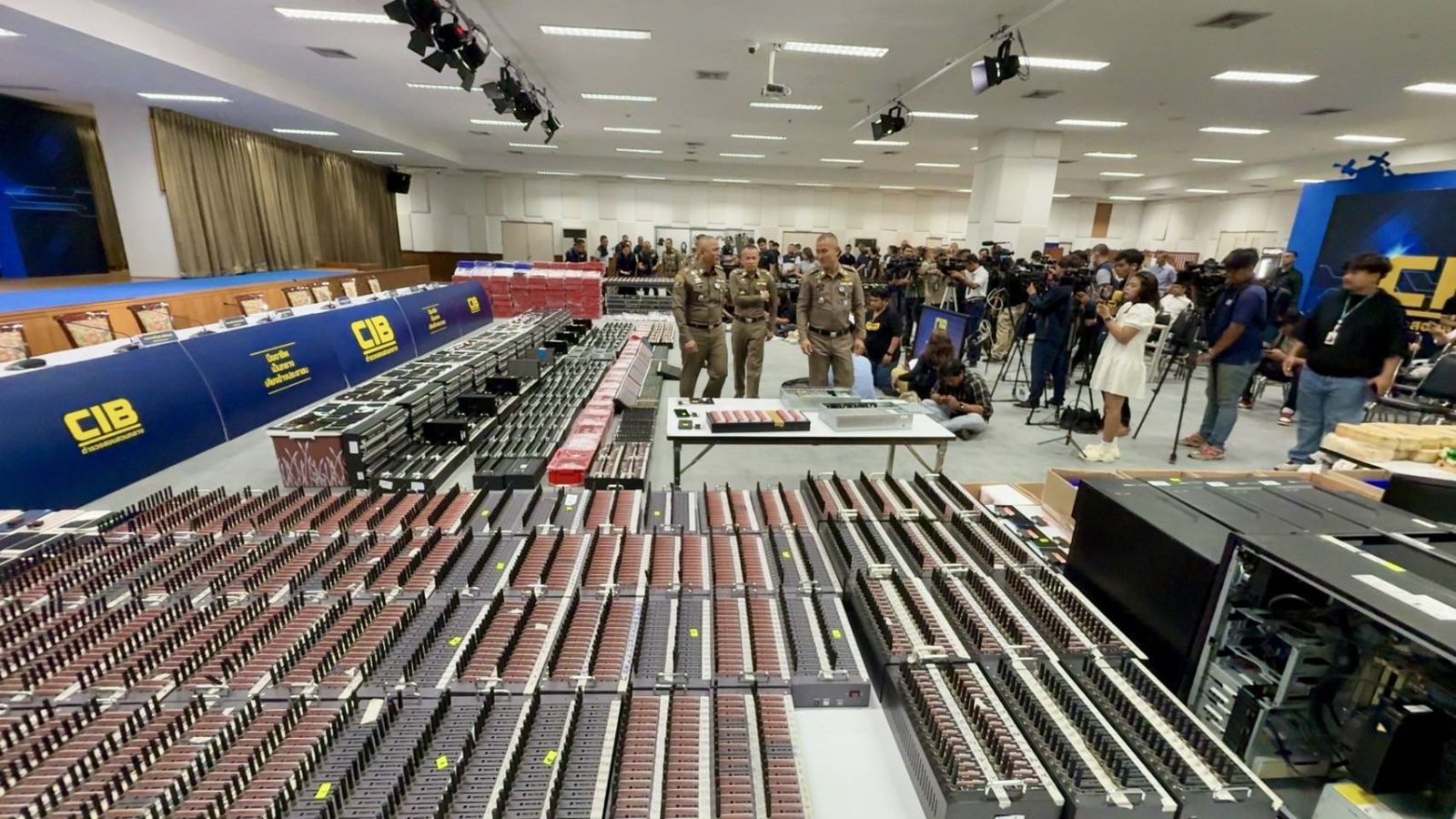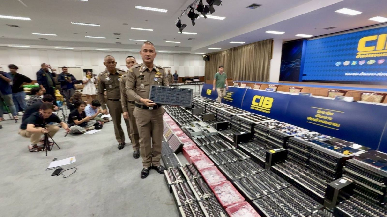 วันนี้ (27พย.2567) พลตำรวจโท จิรภพ ภูริเดช ผู้บัญชาการตำรวจสอบสวนกลาง พร้อมด้วย พลตำรวจตรีโสภณ สารพัฒน์ , พลตำรวจตรีสุวัฒน์ แสงนุ่ม รองผบช.ก. และ พลตำรวจตรีมนตรี เทศขัน ผบก.ป. แถลงข่าวจับกุมแก๊งคอลเซ็นเตอร์ "ขยี้มังกรเทา" สามารถจับกุมคนไทยและชาวต่างชาติ 15 ราย พร้อมยึดของกลาง จำนวน 190,000 กว่ารายการ