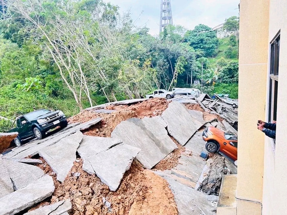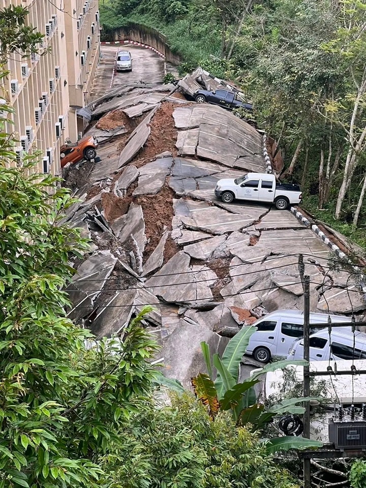 เบื้องต้นเจ้าหน้าที่เทศบาลฯ ได้กั้นบริเวณด้านหลังอาคารไม่ให้เข้าไปใกล้ เพราะเกรง ดินจะสไลด์ลงมาซ้ำ รถที่เคลื่อนย้ายออกมาได้ ก็เลื่อนออกมาจอดยังที่ปลอดภัยด้านล่าง ในขณะที่เจ้าหน้าที่เทศบาลบางส่วน ก็รีบช่วยกันขนย้ายข้าวของเอกสารต่าง ๆ ที่สำคัญออกมาจากตัวอาคารก่อน