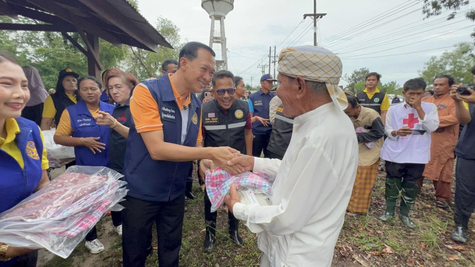 ผู้ว่าฯ นราธิวาส นำเหล่ากาชาดนราธิวาส เยี่ยมผู้ประสบภัยบ้านศาลาใหม่ และบ้านพรุกาบแดง มอบข้าวกล่อง น้ำดื่ม ยาเวชภัณฑ์ ผ้านุ่งโสร่ง ของใช้ที่จำเป็นแก่ผู้ประสบภัย