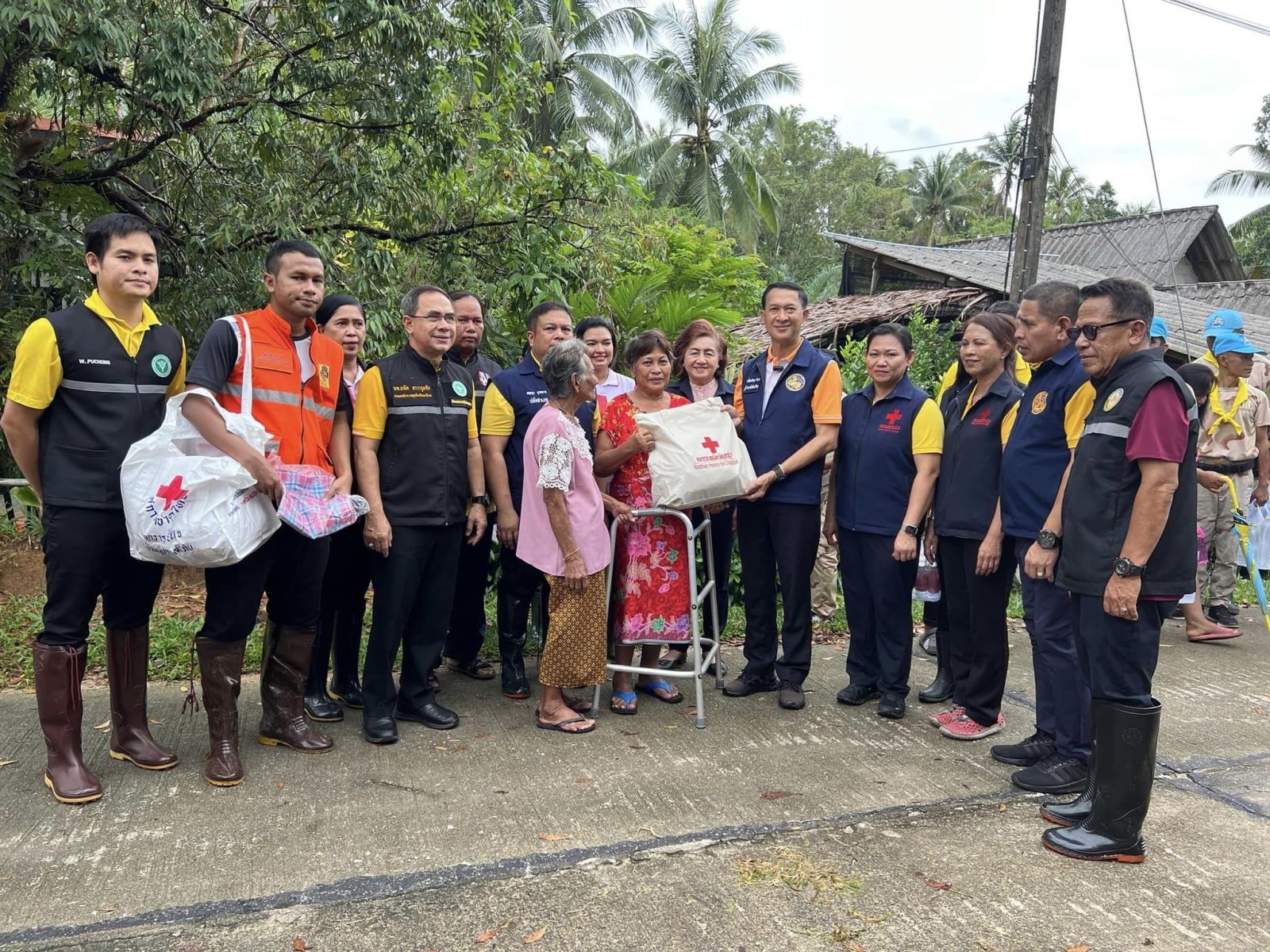 ขณะที่เจ้าหน้าที่จากสถานีกาชาดสิรินธร (สถานีกาชาดที่ 12 ทุ่งสง) สำนักงานบรรเทาทุกข์และประชานามัยพิทักษ์ สภากาชาดไทย เหล่ากาชาดจังหวัดนราธิวาส สำนักงานบริหารกิจการเหล่ากาชาด สภากาชาดไทย ได้ลงมาให้ความช่วยเหลือ และมอบของใช้อุปโภค-บริโภคที่จำเป็นแก่ผู้ประสบภัยด้วย โดยส่วนใหญ่ขาดแคลน แพมเพิสเด็กและนมผงสำหรับเด็กเล็ก