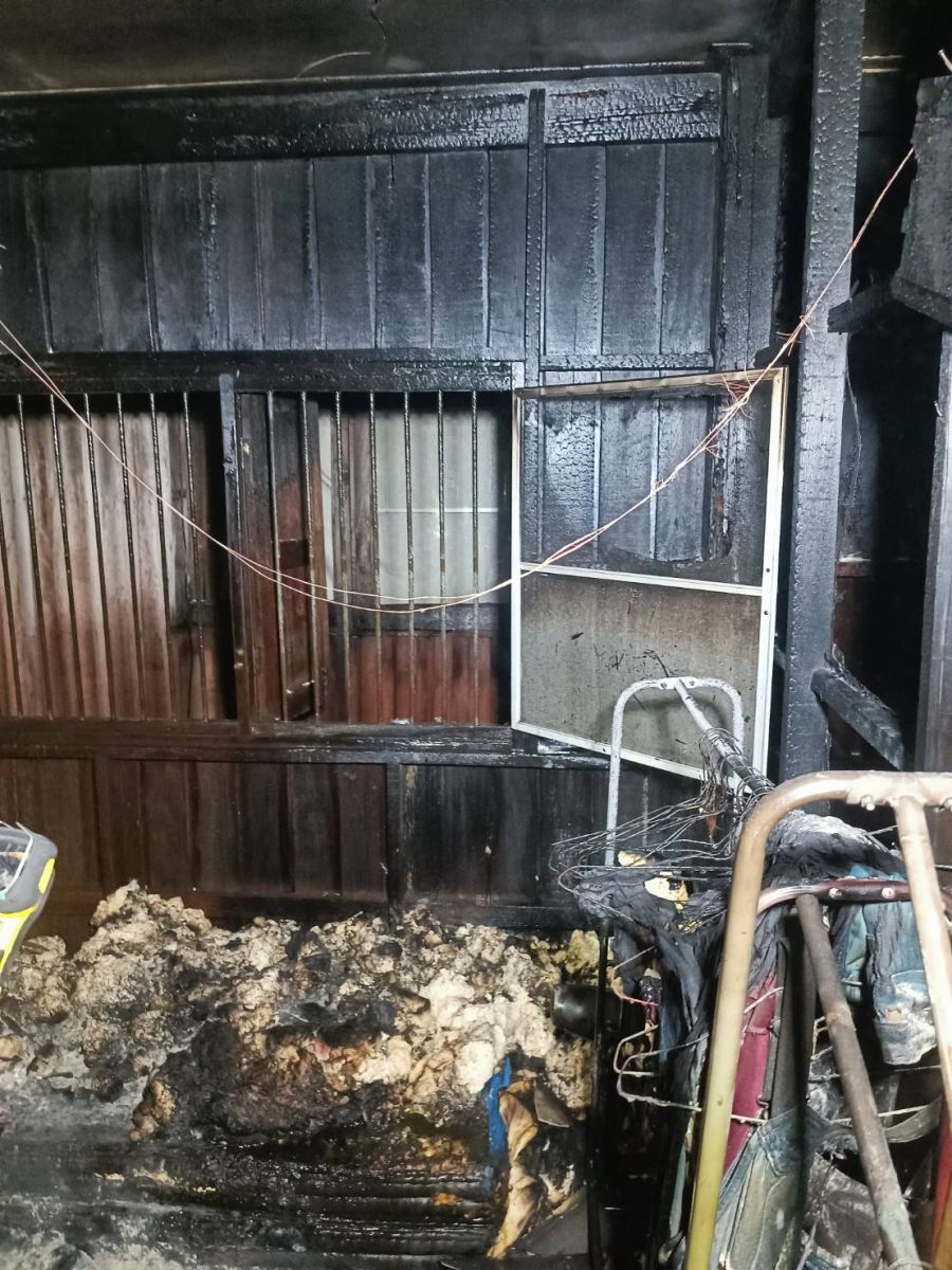 ลักษณะที่เกิดเหตุเป็นบ้านครึ่งตึกครึ่งไม้ 2 ชั้น ใช้เป็นที่พักอาศัย ต้นเพลิงเกิดขึ้นที่ชั้นบนภายในห้องนอน เพลิงลุกไหม้เสียหายที่นอน ชั้นวางของ ลุกลามฝ้าเพดาน พื้นที่เพลิงไหม้เสียหายโดยประมาณ 5 ตารางเมตร อาสามัครใช้น้ำและถังดับเพลิงทำการดับเพลิงสงบ ก่อนรถดับเพลิงถึงที่เกิดเหตุ เจ้าหน้าที่ดับเพลิงทำการดับถ่าน