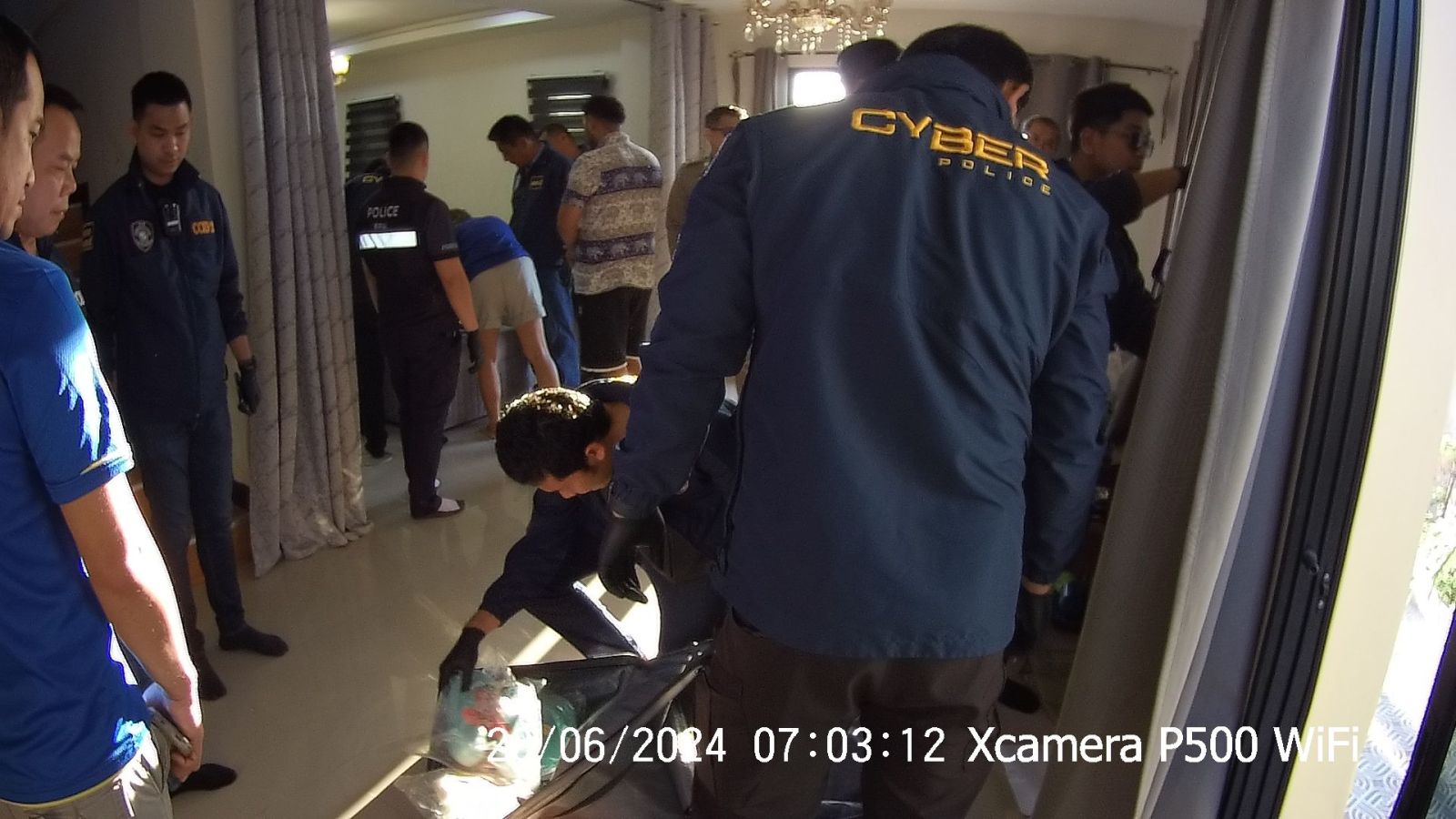 ต่อมาวันที่ 20 มิถุนายน 2567 เจ้าหน้าที่ตำรวจ กก.4 บก.สอท.2 พร้อม เจ้าที่ตำรวจกลุ่มงานสนับสนุนทางไซเบอร์ บก.ตอท. และเจ้าหน้าที่ตำรวจจากสำนักงานตรวจคนเข้าเมือง ร่วมนำหมายค้นศาลจังหวัดพระนครศรีอยุธยา ที่ 243/2567 ลง 19 มิถุนายน 2567 เข้าทำการตรวจค้นบ้านหลังหนึ่ง ในพื้นที่ หมู่ 4 ต.สามกอ อ.เสนา จว.พระนครศรีอยุธยา พบ นางสาวอารยา (ขอสงวนนามสกุล) และนายอาสวานิ สัญชาติอินเดีย เป็นผู้ครอบครองและพักอาศัยอยู่ที่บ้านดังกล่าว ตรวจค้นภายในบ้าน พบอุปกรณ์อิเล็กทรอนิกส์ และบัตร ATM ซึ่งเป็นชื่อบัญชีของนายชาญ และของกลางอื่นที่เกี่ยวข้อง จำนวน 19 รายการ พร้อมสืบสวนขยายผลในเวลาต่อมา