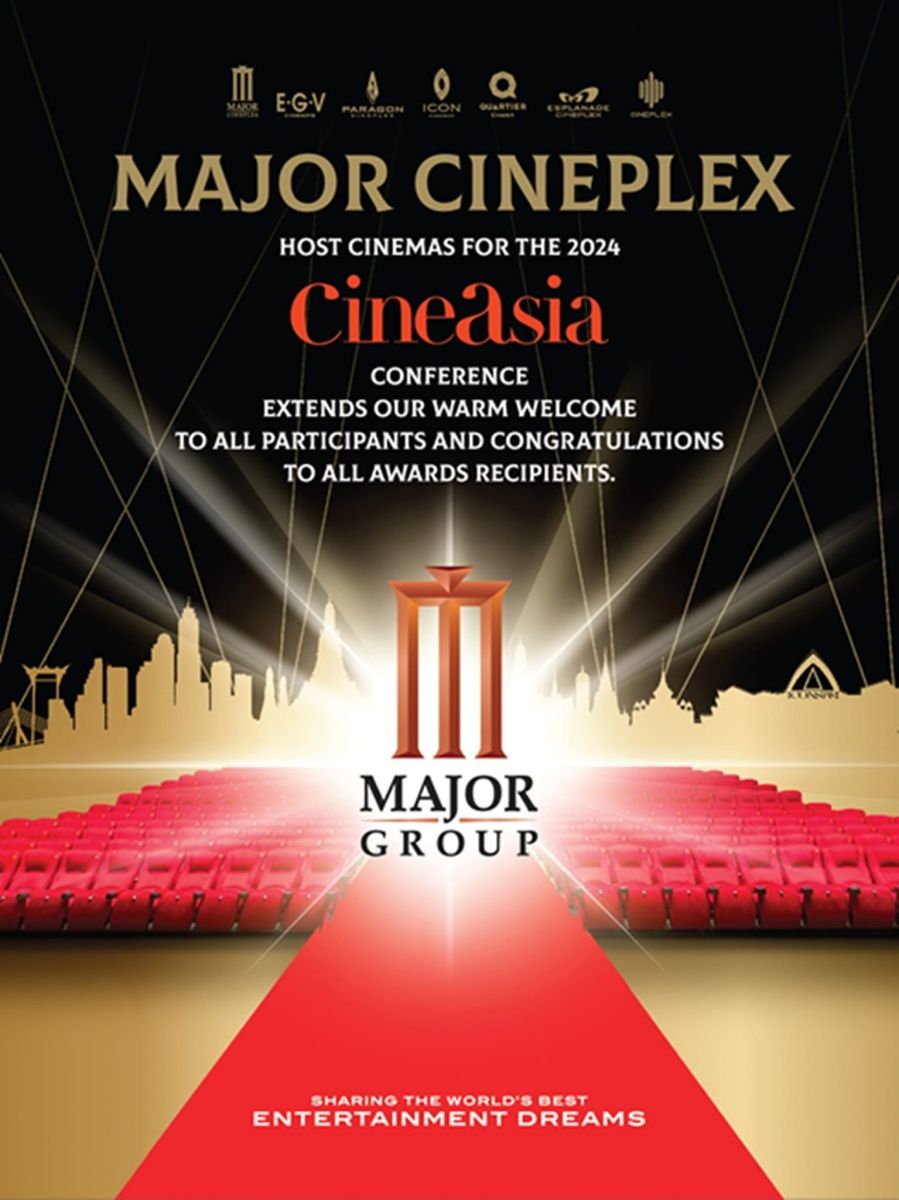 เมเจอร์ ซีนีเพล็กซ์ กรุ้ป ภาคภูมิใจเป็นตัวแทนประเทศไทยร่วมจัดงานใหญ่ประจำปีของอุตสาหกรรมภาพยนตร์ระดับโลกกับงาน “CineAsia” ซึ่งจัดต่อเนื่องมาถึง 3 ปีซ้อน ตั้งแต่ปี 2022-2024 ตอกย้ำความเชื่อมั่นของผู้ประกอบการธุรกิจระดับนานาชาติ ที่ให้ความสำคัญเดินทางมาร่วมประชุม ณ โรงภาพยนตร์ ที่ประเทศไทย ซึ่งในปี 2567 ฟิล์ม เอ็กซ์โป กรุ๊ป กำหนดจัดงาน Cineasia 2024 ครั้งที่ 29 ระหว่างวันที่ 9-12 ธันวาคม 2567 ณ โรงภาพยนตร์ไอคอน ซีเนคอนิค และ ทรู ไอคอน ฮอลล์ โดยมีผู้ประกอบการในอุตสาหกรรมภาพยนตร์กว่า 1,500 คน จาก 30 ประเทศ เดินทางมาร่วมงาน
