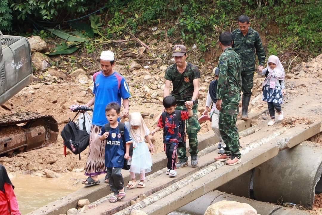 โดยวานนี้ 3 ธ.ค. หน่วยทหารกองทัพภาคที่ 4 ได้รับแจ้งจากนายอาแว ยูโซะ ผู้ใหญ่บ้าน ม.4 ต.ตลิ่งชัน อ.บันนังสะตา จ.ยะลา ว่าเส้นทางสัญจรภายในหมู่บ้านมีดินสไลด์ ถนนยุบตัวและสะพานที่เป็นเส้นทางหลักในการเข้า-ออกหมู่บ้านถูกกระแสน้ำพัดผ่านตัดขาด ทำให้ประชาชนกว่า 400 ครัวเรือนได้รับความเดือดร้อน ไม่สามารถสัญจรผ่านได้ ทางแม่ทัพภาคที่ 4 จึงได้สั่งการให้หน่วยทหาร กองพันทหารช่างที่ 15 กองพลทหารราบที่ 15 นำเครื่องมือและยุทโธปกรณ์ทางการช่างของหน่วย ประกอบด้วย รถแบคโฮเพื่อปรับเส้นทาง และการนำรถสะพานเครื่องหนุนมั่น Modular Fast Bridge (MFB) วางสะพานเชื่อมเส้นทางสัญจรให้ประชาชนเป็นการชั่วคราว ซึ่งปัจจุบันได้ติดตั้งแล้วเสร็จ ประชาชนสามารถสัญจรผ่านเป็นที่เรียบร้อย พร้อมทั้งได้จัดกำลังพลจิตอาสาจากหน่วยเฉพาะกิจกรมทหารพรานที่ 33 ร่วมกับส่วนราชการ, ผู้นำท้องที่, ผู้นำท้องถิ่น ในการปรับภูมิทัศน์ ทำความสะอาดเส้นทางและอำนวยความสะดวกด้านการสัญจรให้ประชาชน พร้อมเตรียมวางแผนซ่อมปรับปรุงสะพานที่ถูกกระแสน้ำตัดขาด ภายหลังระดับน้ำในพื้นที่คลี่คลายต่อไป