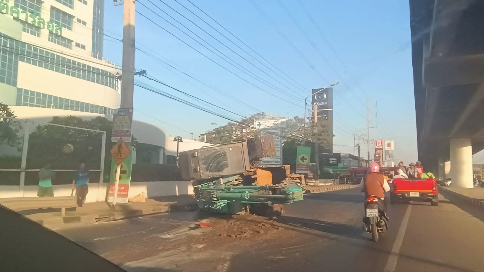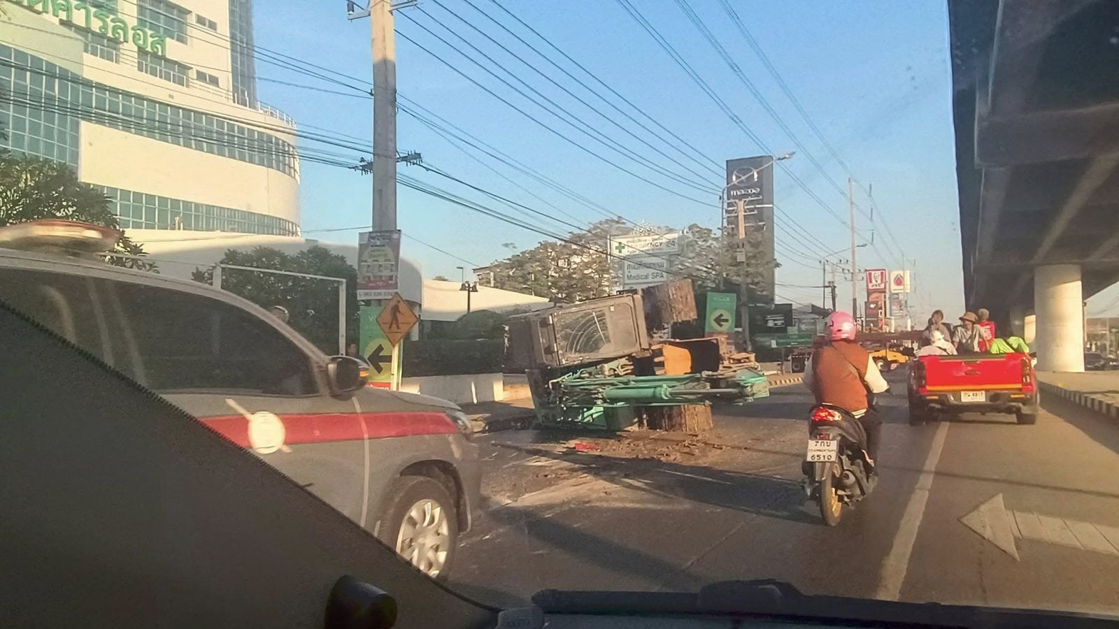 07.49 น. ถนนติวานนท์ ขาออก เลยแยกบ้านกลางเล็กน้อย หน้าโรงพยาบาลกรุงสยามเซนต์คาร์ลอส อุบัติเหตุ รถบรรทุกทำรถแบคโฮหล่น และพลิกตะแคง กีดขวางเลนซ้าย รถติดหนักมาก ท้ายแถวสะสมบนสะพานข้ามคลองบางหลวงเชียงราก และกระทบด้านถนนรังสิต-ปทุมธานี ขาออก มุ่งหน้าแยกบ้านกลาง ติดขัดไปด้วย #รายงานจราจร #รถติด #อุบัติเหตุ #FM91