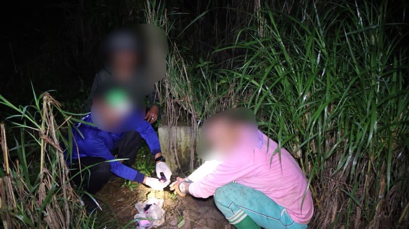 หนุ่มพึ่งพ้นโทษ ขี่รถพกยาบ้ามาหาเพื่อน ถูก ตชด.เบตงเรียกตรวจ นำค้นบ้านเจอในถังข้าวสาร ฝั่งไว้ในสวนผลไม้ เกือบ 2,000 เม็ด จ.ยะลา