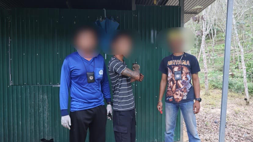 เจ้าหน้าที่เดินทางไปถึงบ้านดังกล่าว เป็นบ้านชั้นเดียวอยู่ข้างคลอง ภายในสวนผลไม้ พบนาย ชัย (นามสมมุติ) อายุ 27 ปี กำลังนั่งเสพยาไอซ์อยู่ภายในบ้าน จึงจับกุมพร้อมของกลาง ยาไอซ์ 1 ถุง น้ำหนักประมาณ 0.66 กรัม อุปกรณ์การเสพยาไอซ์ 1 ชุด และยังพบยาบ้า เม็ดสีเขียวอีก 1 เม็ด ซึ่งขณะที่เจ้าหน้าที่กำลังตรวจค้นบ้านอยู่นั้น ได้มีนายสม (นามสมมุติ) อายุ 44 ปี ซึ่งเป็นเพื่อนนายชัย ขี่รถจักรยานยนต์ ยี่ห้อ ฮอนด้า สีฟ้าดำ หมายเลขทะเบียน เบตง มาจอดที่หน้าบ้าน เมื่อเห็นเจ้าหน้าที่ ก็มีอาการตกใจ มีพิรุธ เจ้าหน้าที่จึงขอตรวจค้น พบยาบ้า 1 ถุง จำนวน 18 เม็ด ซุกซ่อนไว้ในถุงเท้าข้างซ้ายที่สวมใส่อยู่ ซึ่งรับว่าจะนำมาเสพ เจ้าหน้าที่จึงนำตัวทั้ง 2 รายมาสอบและทำบันทึกจับกุมที่กองร้อย ตชด.445