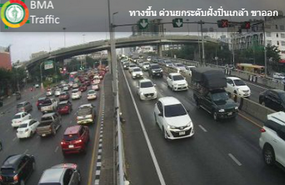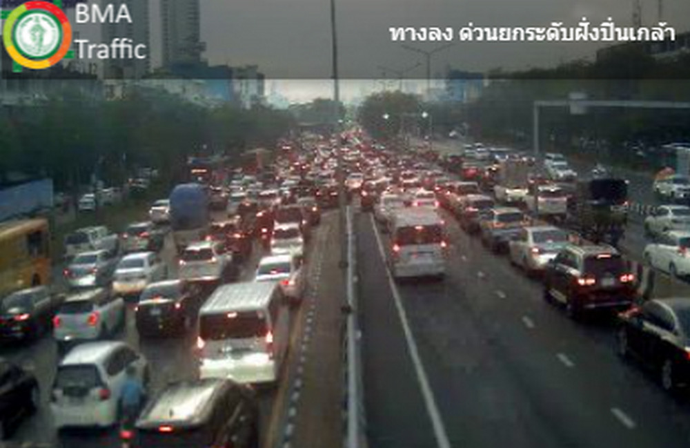 - สะพานพระราม 3 , สะพานกรุงเทพ ฝั่งขาเข้า เริ่มเคลื่อนตัวช้า ท้ายอยู่ที่แยกมไหสวรรย์