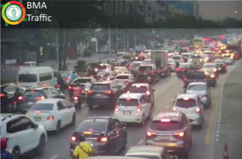 - สะพานกรุงธน (ซังฮี้) ขาเข้า ท้ายแถวสะสมอยู่ที่เชิงทางขึ้นสะพานข้ามแยกบางพลัด