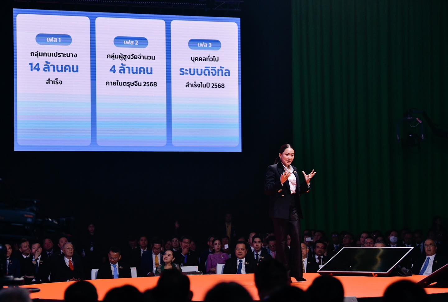 นายกรัฐมนตรี กล่าวเริ่มต้นงานว่า ผลงานของรัฐบาลแพทองธาร เป็นผลงานที่ต่อเนื่องมาจากการบริหารงานของอดีตนายกรัฐมนตรีนายเศรษฐา วันนี้รัฐบาลแพทองธารได้ทำงานผ่านความร่วมมือของคณะรัฐมนตรีและพี่น้องข้าราชการ เพื่อพี่น้องประชาชนมาแล้ว 90 วันเต็ม ทำให้วันนี้ “ทุกคนคือทีมเดียวกัน” และจะร่วมกันเดินไปข้างหน้าอย่างเต็มที่ วางรากฐานของประเทศไทยในทศวรรษหน้า ให้คนไทยมีกิน-มีใช้-มีเกียรติ-มีศักดิ์ศรี ประเทศไทยในปี 2568 จะเป็นปีแห่ง “โอกาส” รัฐบาลจะสร้างผลงานที่เป็นรูปธรรม เพื่อสร้างอนาคตที่เป็นจริง