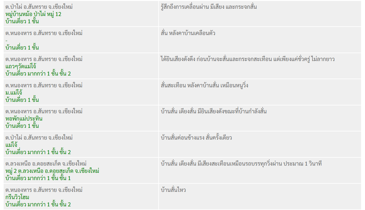 แผ่นดินไหว ที่จังหวัดเชียงใหม่ รับรู้ได้ถึงแรงสั่นสะเทือนในพื้นที่ อ.สันทราย และ อ.ดอยสะเก็ด