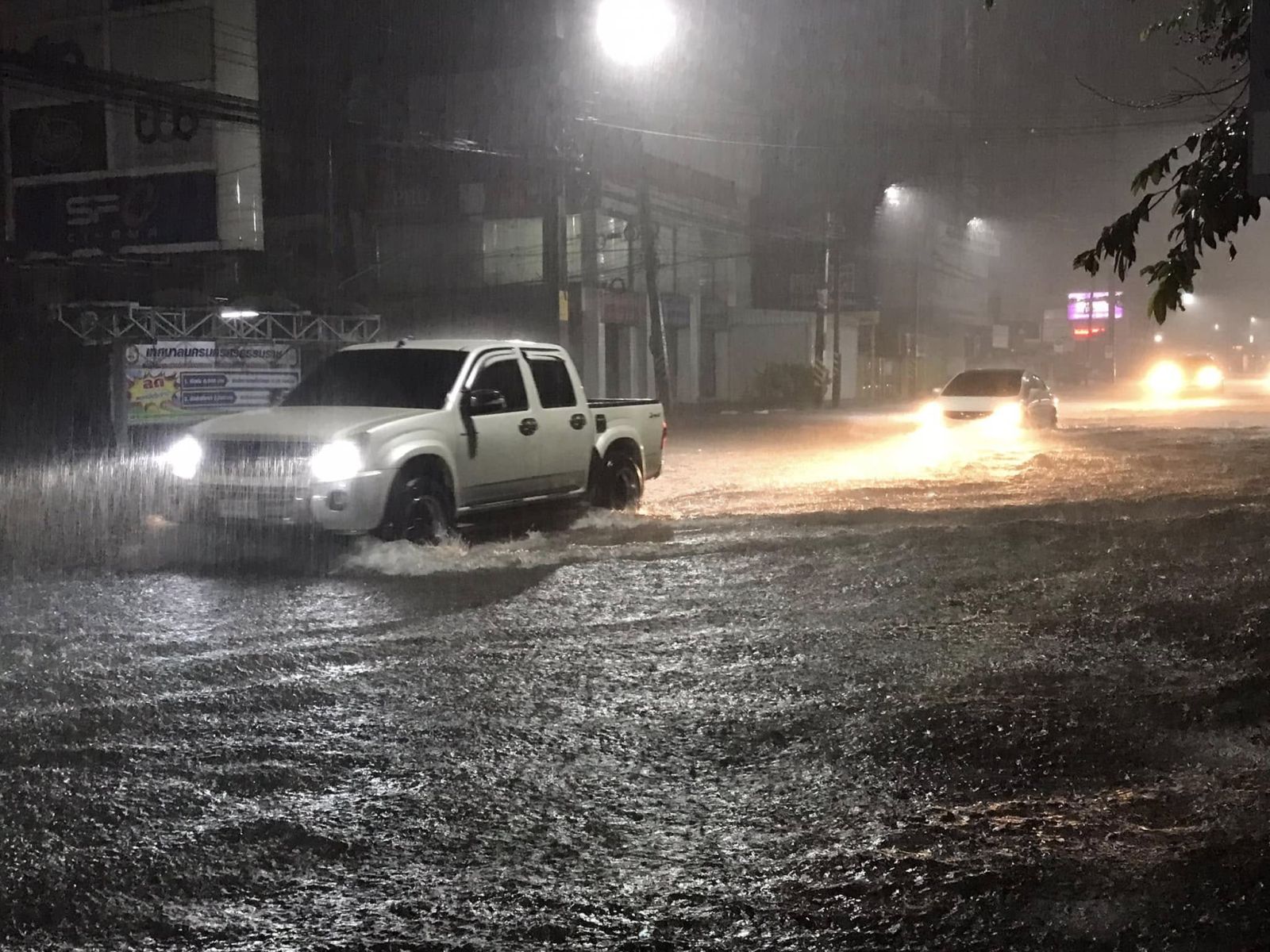 ฝนถล่มต่อเนื่อง ในเขตเทศบาลนคร นครศรีธรรมราช มีน้ำท่วมพื้นผิวจราจรให้แห่ง