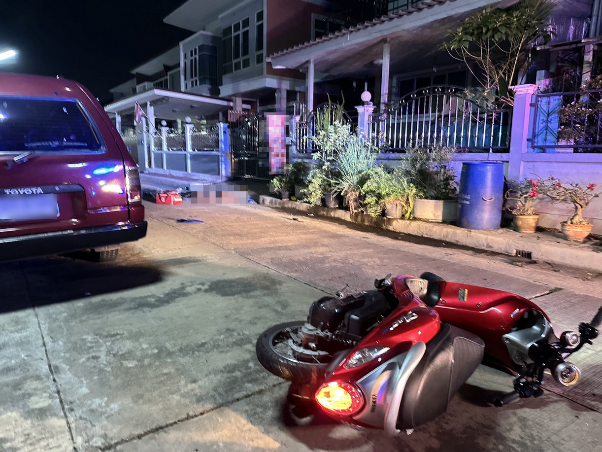 หนุ่มวัยเบญจเพส ขี่รถจักรยานยนต์เสียหลักขึ้นนขอบทางและชนกำแพงบ้านเรือน เสียชีวิตกลางถนนภายในหมู่บ้าน จ.สมุทรปราการ