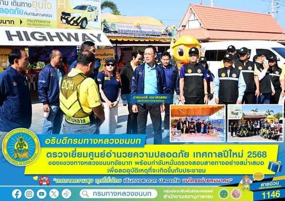 (30 ธ.ค. 67) นายมนตรี เดชาสกุลสม อธิบดีกรมทางหลวงชนบท พร้อมคณะ ลงพื้นที่ตรวจเยี่ยมศูนย์อำนวยความปลอดภัยของแขวงทางหลวงชนบทชัยนาท ภายใต้การรณรงค์ของกระทรวงคมนาคม “เทศกาลความสุข ทุกที่ทั่วไทย เดินทาง สะดวก ปลอดภัย บนโครงข่ายคมนาคม“ ซึ่งภายในศูนย์ได้จัดจุดบริการพักผ่อน พร้อมอาหาร/เครื่องดื่ม และห้องน้ำสะอาดไว้คอยบริการประชาชน พร้อมจัดเจ้าหน้าที่ให้คำแนะนำเส้นทางและอำนวยความปลอดภัยตลอด 24 ชั่วโมง โดยมีนายวิทย์ วรวงค์ ผู้อำนวยการสำนักงานทางหลวงชนบทที่ 2 พร้อมผู้อำนวยการแขวงทางหลวงชนบทภายใต้สังกัดให้การต้อนรับ ซึ่งมีนายพงษ์ศักดิ์ มาคล้าย ผู้อำนวยการแขวงทางหลวงชนบทชัยนาท สรุปผลการปฏิบัติงาน