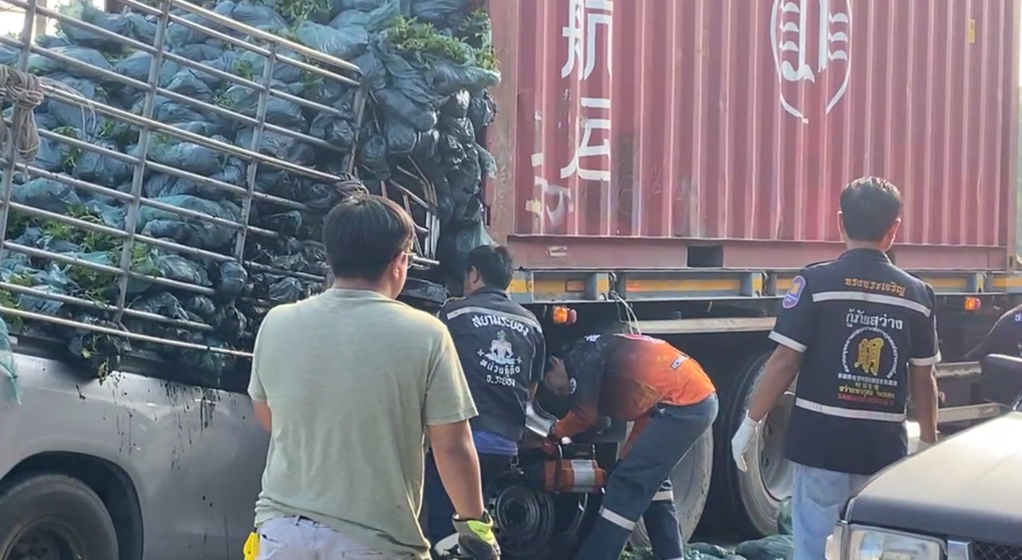 ก่อนหน้านี้ ช่วง 08.45 น. มีอุบัติเหตุ รถกระบะ ขนผัก ชนท้ายรถบรรทุก ติดภายใน ทล.สาย 36 ขาเข้าระยอง แยกมาบข่า ต.นิคมพัฒนา อ.นิคมพัฒนา จ.ระยอง กู้ภัยเร่งใช้เครื่องมือตัดถ่างให้การช่วยเหลือผู้บาดเจ็บ