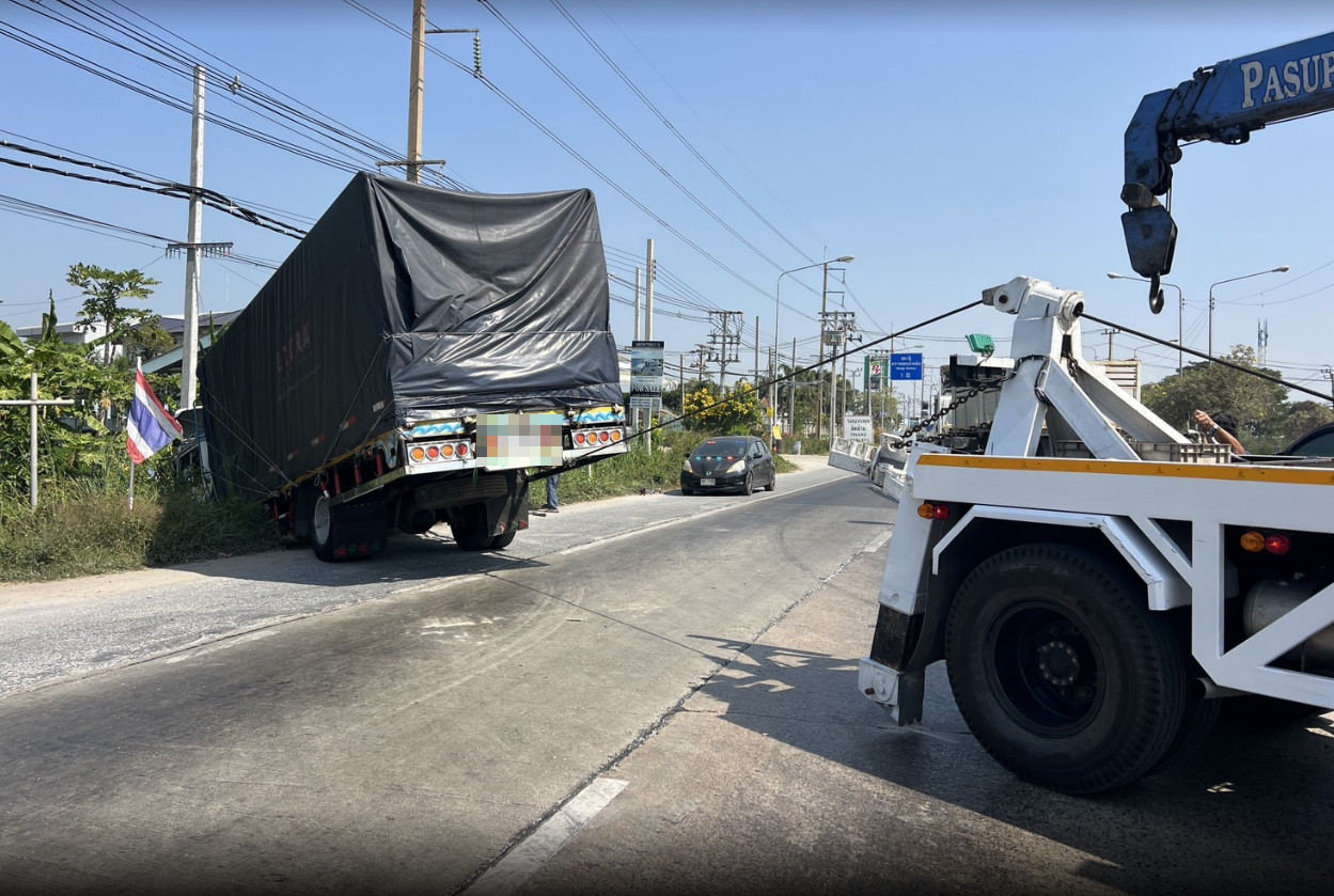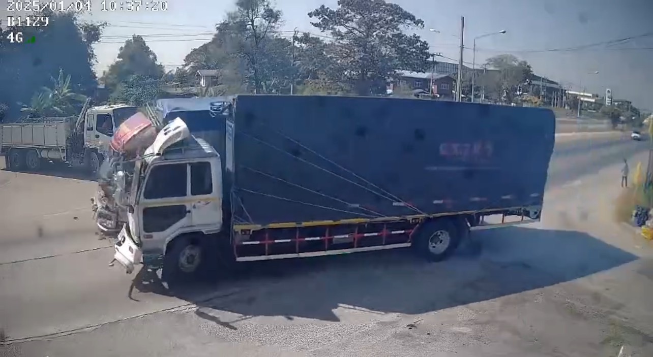 นายนวมินทร์ คนขับรถบรรทุก 6 ล้อยี่ห้อ ฮีโน่ กล่าวว่า ในขณะที่ตนเองขับมาทางตรง จู่ๆ รถบรรทุก 6 ล้อคู่กรณีขับพุ่งตรงออกมาจากซอยวัด โดยสังเกตว่าไม่มีการชะลอหรือเบรคแต่อย่างใด ในขณะนั้นตนไม่สามารถเบรคได้ทันทำให้พุ่งชนเข้าอย่างแรง