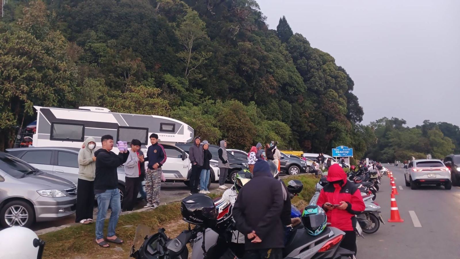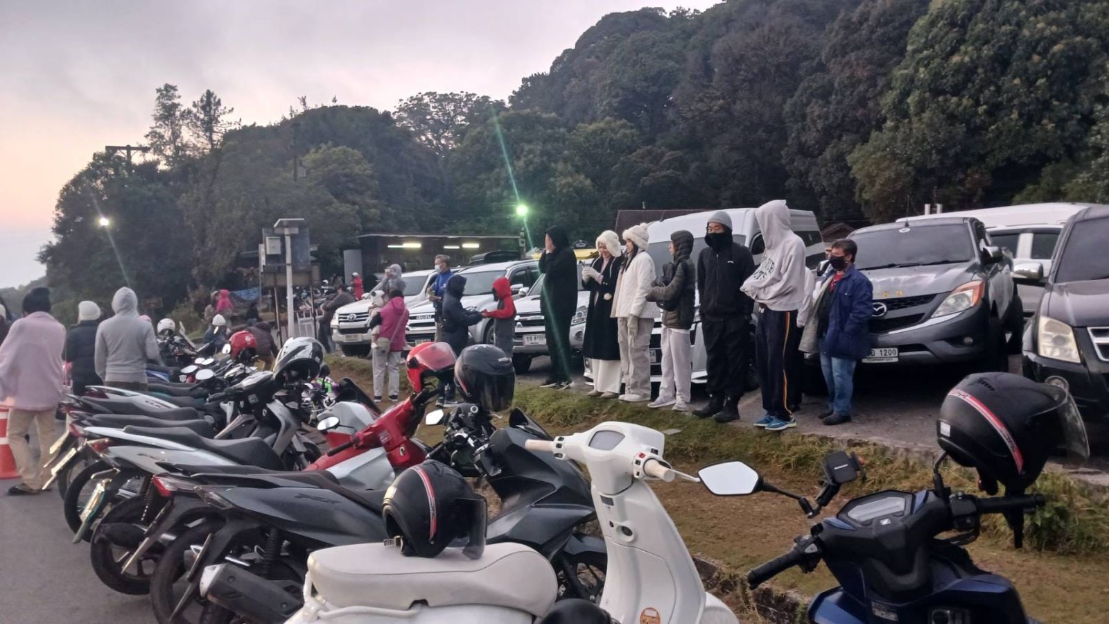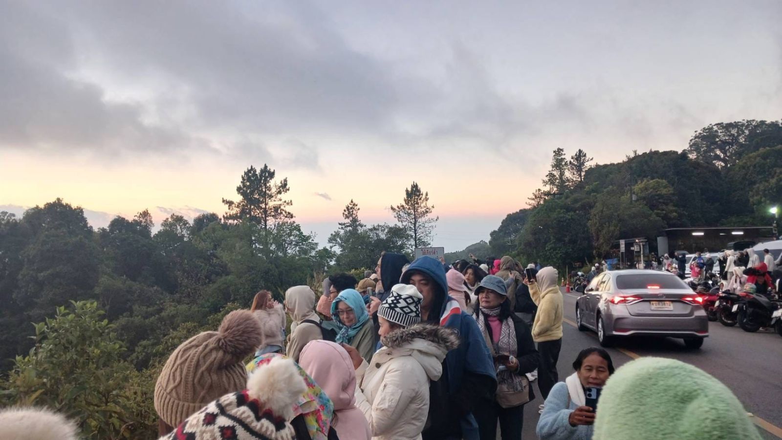 ในส่วนของบรรยากาศการท่องเที่ยวดอยอินทนนท์ โดยเฉพาะจุดชมวิวกิ่วแม่ปาน คึกคักไปด้วยนักท่องเที่ยวจำนวนมากที่มารอแสงแรกและขึ้นมาสัมผัสอากาศหนาว