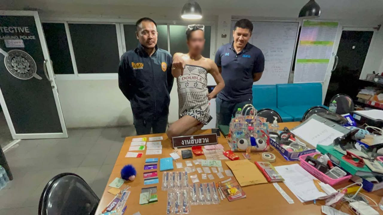 เบื้องต้นตำรวจจึงควบคุมตัวเอาไว้ก่อน พร้อมทำการตรวจภายในกระเป๋าสะพาย พบของกลางเพิ่มเติมเป็น กระบอกฉีดยาอินซูลิน นิโปร พร้อมเข็มฉีดยา ความจุ 1 ml. จำนวน 13 อัน สภาพใหม่ เงินสดจำนวน 5,300 บาท บัตรเดบิต 5 ใบ ลอตเตอรี่ 8 ใบ โทรศัพท์มือถือ 1 เครื่อง และหนังสือสวดมนต์ 1 เล่ม จึงดำเนินการบันทึกจับกุม ก่อนควบคุมตัวส่งพนักงานสอบสวน สภ.บางละมุง ดำเนินคดีตามกฏหมาย