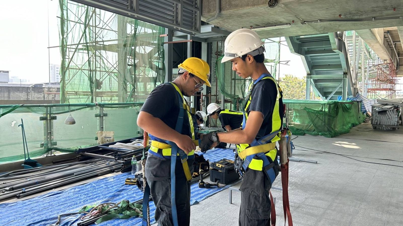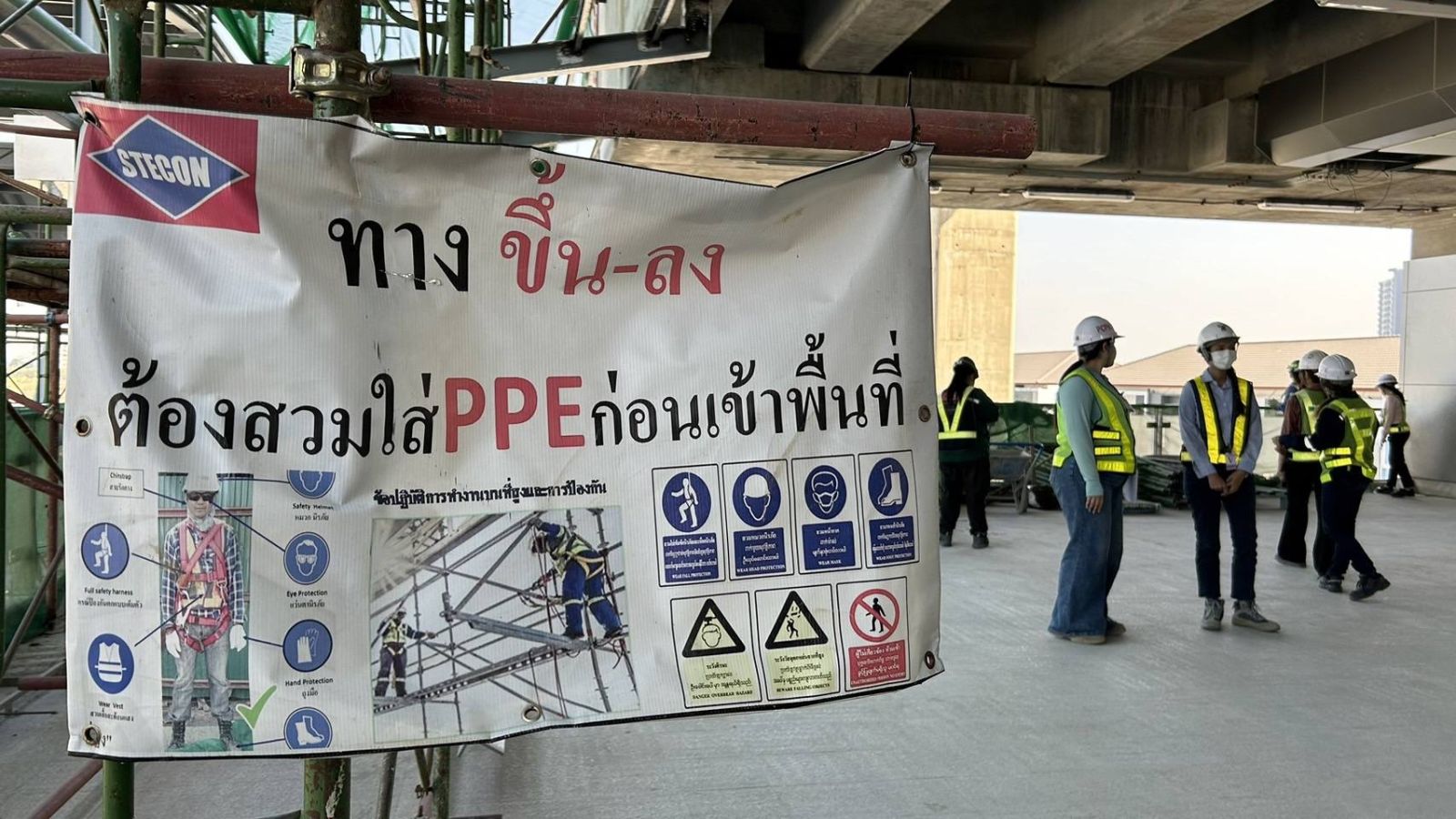 การรถไฟฟ้าขนส่งมวลชนแห่งประเทศไทย (รฟม.) โดยคณะกรรมการความปลอดภัย อาชีวอนามัย และสภาพแวดล้อมในการทำงาน (คปอ.) นำคณะเจ้าหน้าที่ตรวจสอบและติดตามงานด้านอาชีวอนามัยและความปลอดภัยในการก่อสร้างของโครงการรถไฟฟ้าสายสีชมพูส่วนต่อขยาย ช่วงสถานีศรีรัช – เมืองทองธานี บริเวณสถานี อิมแพ็คเมืองทองธานี (MT01) และสถานีทะเลสาบเมืองทองธานี (MT02) โดยได้ตรวจสอบการปฏิบัติงานก่อสร้างให้เป็นไปตามมาตรการความปลอดภัย รวมถึงตรวจสอบอุปกรณ์ต่าง ๆ ให้มีความสมบูรณ์พร้อมใช้งานอยู่เสมอ อาทิ การติดตั้งตาข่ายป้องกันเศษวัสดุและเศษฝุ่นละอองจากการก่อสร้างในที่สูง ตรวจสอบสภาพอุปกรณ์ดับเพลิงให้พร้อมใช้งานและมีจำนวนเพียงพอ เป็นต้น อีกทั้งยังกำชับให้ผู้ปฏิบัติงานทุกคนสวมใส่อุปกรณ์คุ้มครองความปลอดภัยส่วนบุคคลตลอดระยะเวลาที่ปฏิบัติงาน และปฏิบัติตามมาตรฐานความปลอดภัยอย่างเคร่งครัด เพื่อให้การดำเนินงานก่อสร้างโครงการให้มีความปลอดภัยแก่ผู้ปฏิบัติงานและประชาชนมากที่สุดและสอดคล้องตาม “ปฏิญญาว่าด้วยความปลอดภัยในการก่อสร้างโครงการระบบรถไฟฟ้าขนส่งมวลชน Zero Fatal Accident”