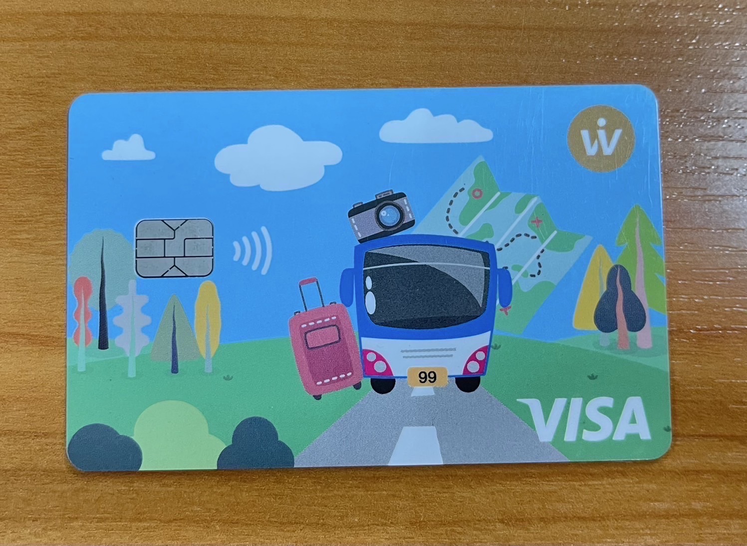 บัตร บขส. Wi Wallet VISA เป็นบัตรเติมเงิน (Prepaid Card) หน้าบัตรเป็นรูปการ์ตูนรถบัส 99 และมีโลโก้ Wi Wallet อยู่ด้านบน ด้านหลังจะระบุข้อมูลบัตร