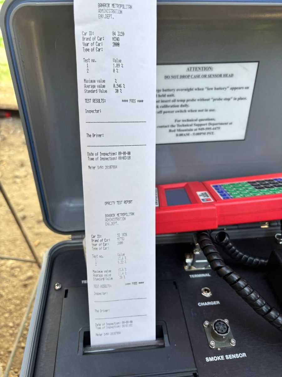 โดยในวันนี้ได้สุ่มตรวจ 2 โครงการ ประกอบด้วย โครงการก่อสร้างมารุ จุฬาฯ ถนนเจริญเมือง เขตปทุมวัน พบว่ามีรถบรรทุกดินอยู่ในโครงการก่อสร้าง จำนวน 2 คัน ผลการตรวจวัดค่าควันดำ ผ่านเกณฑ์มาตรฐานทั้ง 2 คัน จากนั้นตรวจโครงการก่อสร้างอาคารชุดพักอาศัยย่าน เขตวัฒนา พบรถบรรทุกดินในโครงการก่อสร้าง จำนวน 1 คัน ผลการตรวจวัดค่าควันดำ ผ่านเกณฑ์มาตรฐาน