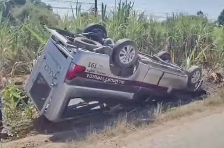 ที่เกิดเหตุ พบรถกระบะ โตโยต้า สีเทา ป้ายทะเบียนตราโล่ เป็นรถขนผู้ต้องหาของ สภ.นิคมสร้างตนเอง ลักษณะพลิกหงายท้องอยู่ข้างทาง มีผู้ได้รับบาดเจ็บ 5 รายทั้งเจ้าหน้าที่ตำรวจ และผู้ต้องหายาเสพติดทีนั่งมาด้วย ใกล้กันพบจักรยาน 1 คันสภาพถูกชนพังเสียหาย และมีผู้เสียชีวิต 1 รายคือ นางสวัน อายุ 74 ปี