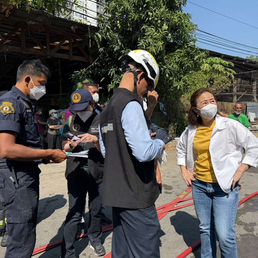 วันที่ 18 มกราคม 2568 รศ.ทวิดา กมลเวชช รองผู้ว่าราชการกรุงเทพมหานคร ลงพื้นที่ติดตามสถานการณ์หลังเกิดเหตุเพลิงไหม้ภายในโรงไม้ ซอยประชาราษฎร์สาย 1 ซอย 23 ถนนประชาราษฎร์สาย 1 เขตบางซื่อ โดยมี นายเจษฎา ประภาสะวัต ผู้อำนวยการเขตบางซื่อ นายสุริยชัย รวิวรรณ ผู้อำนวยการสำนักป้องกันและบรรเทาสาธารณภัย ผู้บริหารสำนักป้องกันและบรรเทาสาธารณภัย สำนักงานเขตบางซื่อ และเจ้าหน้าที่ที่เกี่ยวข้อง รายงานข้อมูล