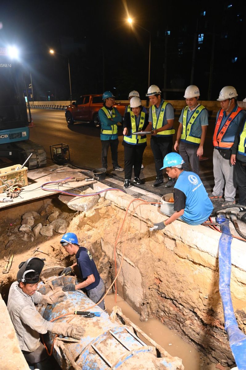 เมื่อวันที่ 18 มกราคม พ.ศ. 2568 เวลา 22.30 น. ณ บริเวณสะพานกรุงธน (ซังฮี้) ถนนราชวิถี นางสาวสุวรา ทวิชศรี ผู้ว่าการการประปานครหลวง (กปน.) นำคณะผู้บริหาร กปน. ลงพื้นที่ตรวจเยี่ยมติดตามความคืบหน้างานซ่อมท่อส่งน้ำดิบ (ซึ่งทำหน้าที่ส่งน้ำดิบ จากสถานีสูบน้ำดิบบางซื่อ ไปยังโรงงานผลิตน้ำธนบุรี) ที่แตกรั่ว เป็นกรณีเร่งด่วน เพื่อให้คำแนะนำ ให้กำลังใจ ตลอดจนช่วยอำนวยความสะดวกให้แก่ทีมงานภาคสนาม นำไปสู่การดำเนินงานอย่างราบรื่น มีประสิทธิภาพ ส่งผลกระทบต่อประชาชนน้อยที่สุด รวมถึงได้มีการเฝ้าระวังตามมาตรการบรรเทาผลกระทบต่อประชาชน เป็นต้น