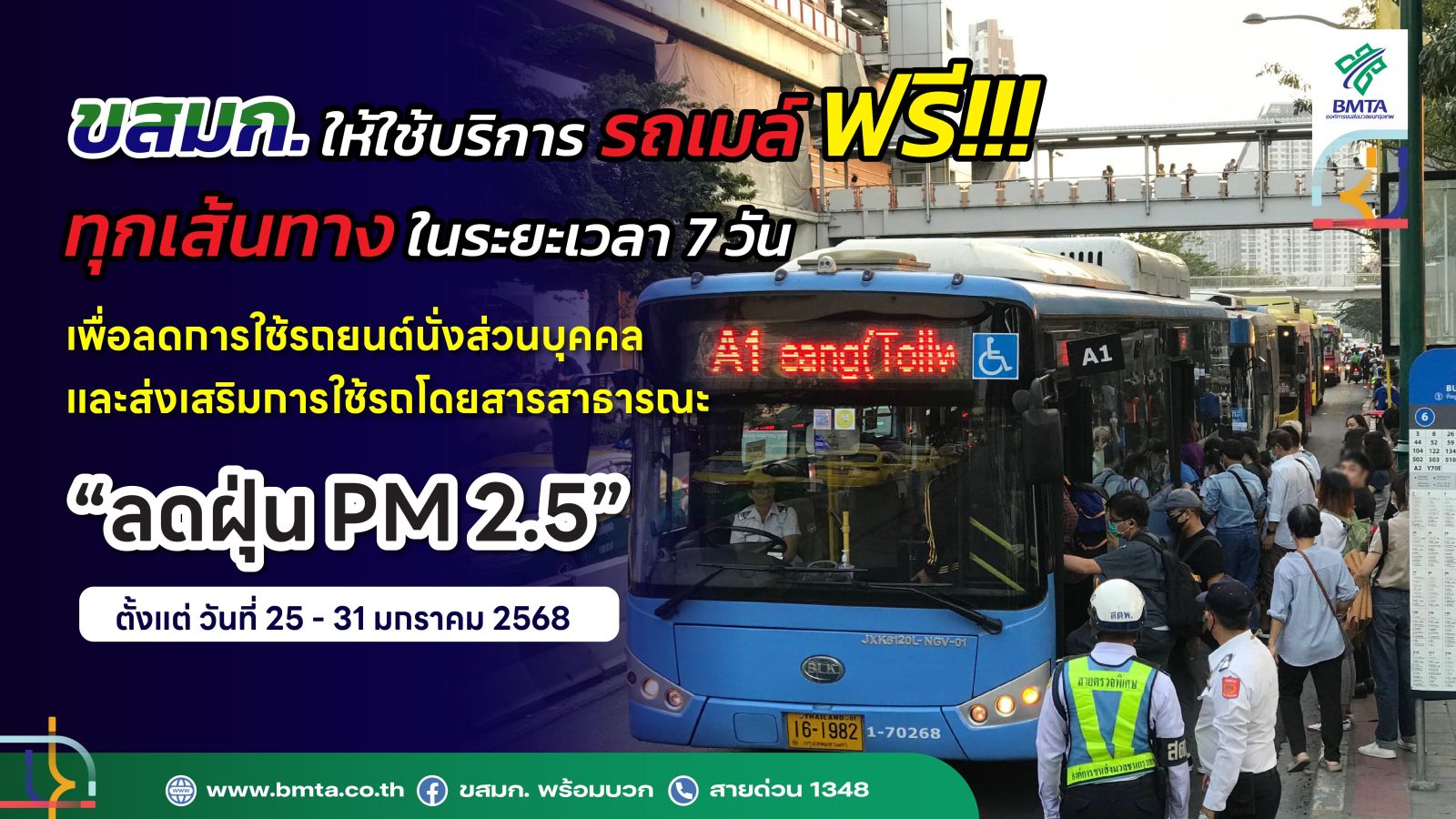 ** ขสมก. ให้บริการรถโดยสารฟรีทุกเส้นทาง แก้ไขปัญหาสถานการณ์ฝุ่นละอองขนาดเล็ก (PM 2.5)