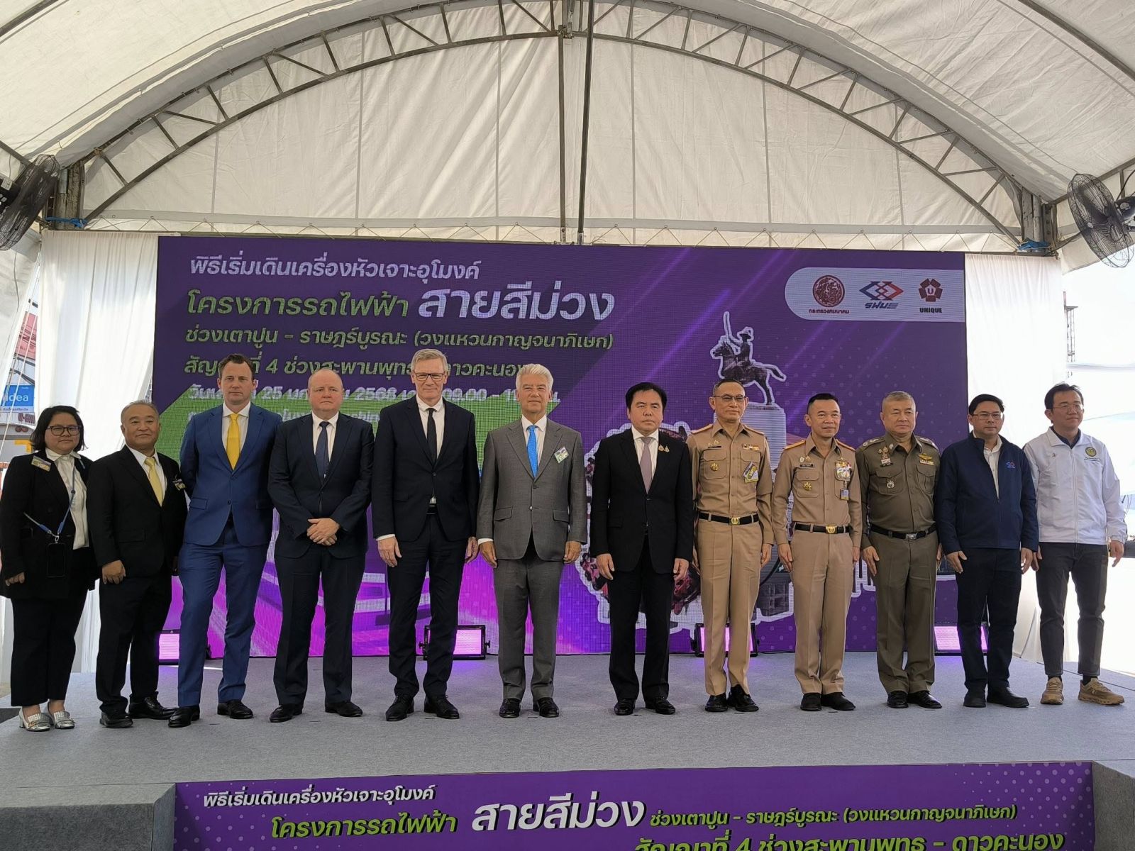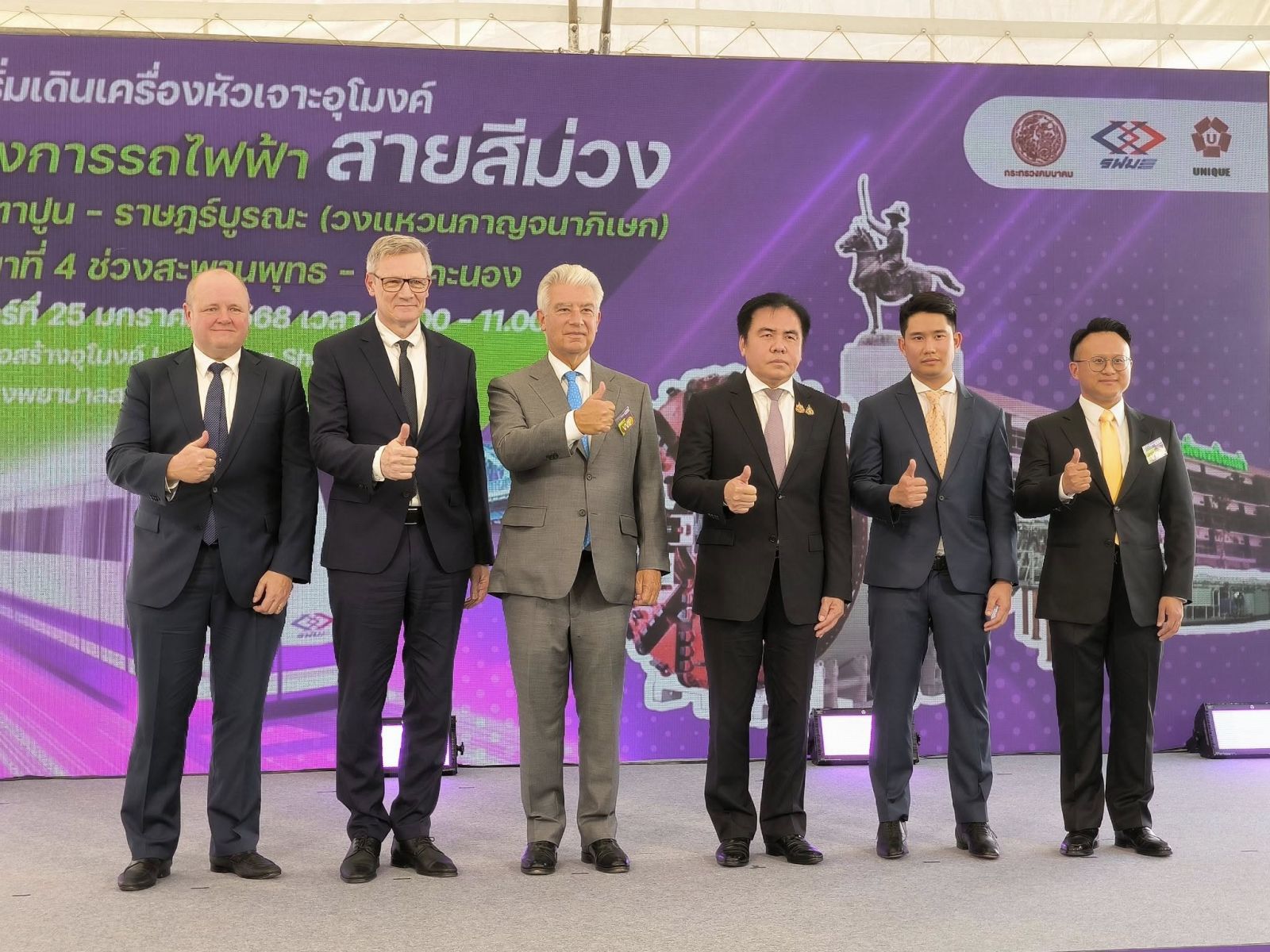 วันนี้ (25 มกราคม 2568) นายสุรพงษ์ ปิยะโชติ รัฐมนตรีช่วยว่าการกระทรวงคมนาคม ให้เกียรติเป็น ประธานในพิธีเริ่มเดินเครื่องหัวเจาะอุโมงค์ โครงการรถไฟฟ้าสายสีม่วง ช่วงเตาปูน - ราษฎร์บูรณะ (วงแหวน กาญจนาภิเษก) สัญญาที่ 4 ช่วงสะพานพุทธ - ดาวคะนอง โดยมี Dr. Ernst Reichel เอกอัครราชทูตเยอรมันประจําประเทศไทย นายมนตรี ตั้งเจริญถาวร ที่ปรึกษารัฐมนตรีช่วยว่าการกระทรวงคมนาคม นายสรพงศ์ ไพฑูรย์พงษ์ รองปลัดกระทรวงคมนาคม (หัวหน้ากลุ่มภารกิจด้านการขนส่ง) พลตํารวจตรี ธวัช วงศ์สง่า รองผู้บัญชาการตํารวจ นครบาล ดร. พิเชฐ คุณาธรรมรักษ์ อธิบดีกรมการขนส่งทางราง นายมนตรี เดชาสกุลสม ประธานกรรมการการรถไฟฟ้าขนส่งมวลชนแห่งประเทศไทย (รฟม.) นายวิทยา พันธุ์มงคล รองผู้ว่าการ (ปฏิบัติการ) รักษาการแทนผู้ว่าการ รฟม. นายประสงค์ สุวิวัฒน์ธนชัย ประธานเจ้าหน้าที่บริหาร บริษัท ยูนิค เอ็นจิเนียริ่ง แอนด์ คอนสตรัคชั่น จำกัด (มหาชน) พร้อมด้วย ผู้แทนจากส่วนงานที่เกี่ยวข้อง ได้แก่ กรมแพทย์ทหารเรือ โรงพยาบาลสมิติเวช ธนบุรี โรงพยาบาลสมเด็จพระปิ่นเกล้า สํานักงานเขตคลองสาน สํานักงานเขตธนบุรี เข้าร่วมพิธี ณ จุดก่อสร้างอุโมงค์ สถานีโรงพยาบาลสมเด็จพระปิ่นเกล้า ถนนสมเด็จพระเจ้าตากสิน เขตธนบุรี กรุงเทพมหานคร